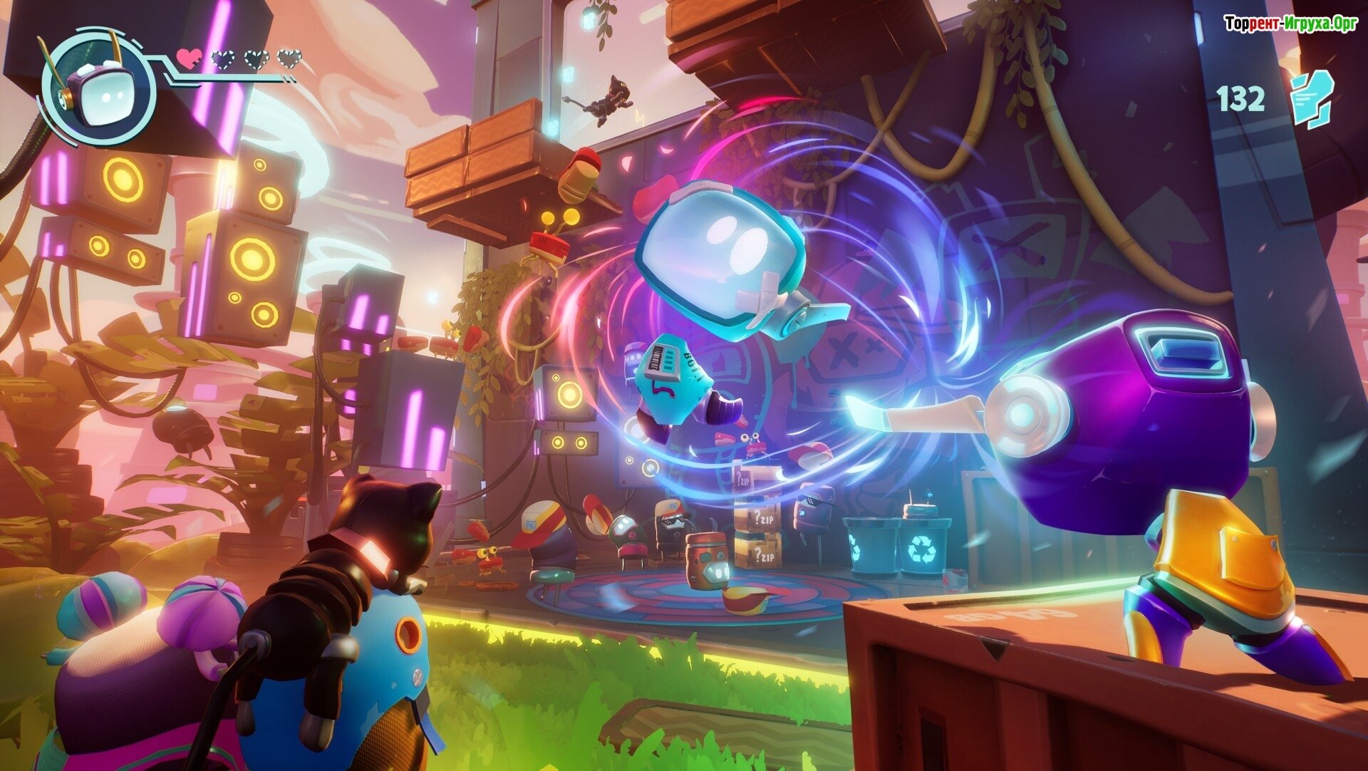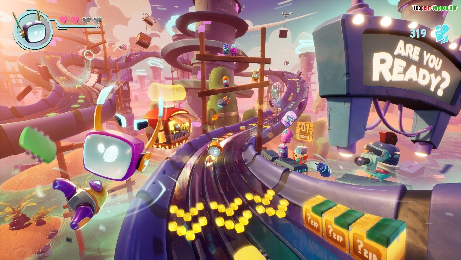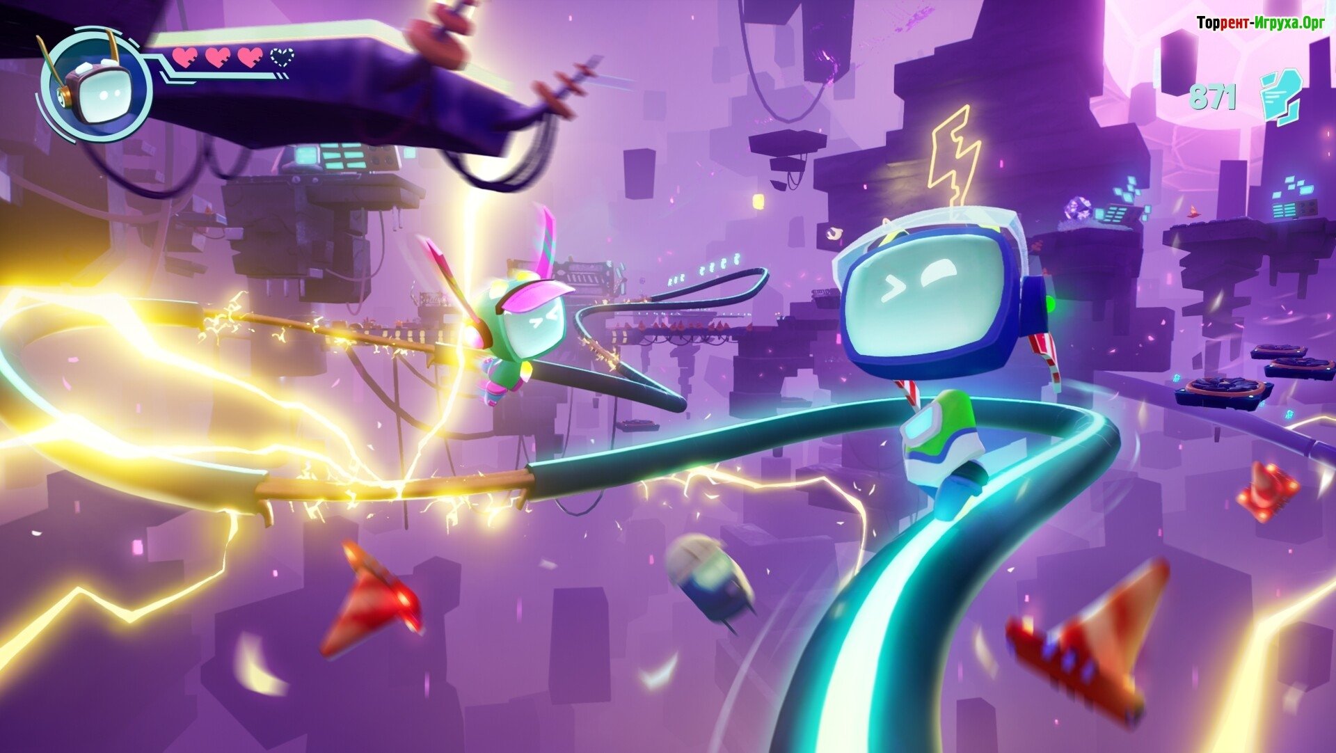 Игровой сюжет: Вы можете прожить захватывающее приключение в одиночку или с другом – в удобном многопользовательском режиме. Управляйте милым и энергичным ботом Боти, которому предстоит выполнять роль курьера данных, и он обитает в невероятно быстром и сложном мире, существующем внутри компьютера.