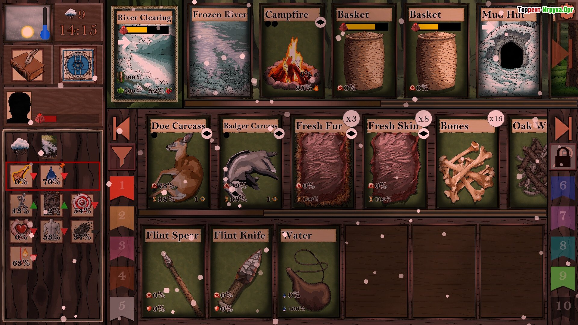 ## Ключевые особенности игры * Карточный геймплей, сочетающий в себе в себе простоту и глубокую стратегию выживания. * Моделирование сложных, автономных экосистем, которые самостоятельно развиваются и реагируют на ваши действия. * Динамическая система здоровья, учитывающая как физическое, так и психическое состояние персонажа – требует от игрока внимательности и тактического мышления. * Непредсказуемые циклы сезонов и постоянные изменения погоды, добавляющие игре не только разнообразие, но и элемент риска.