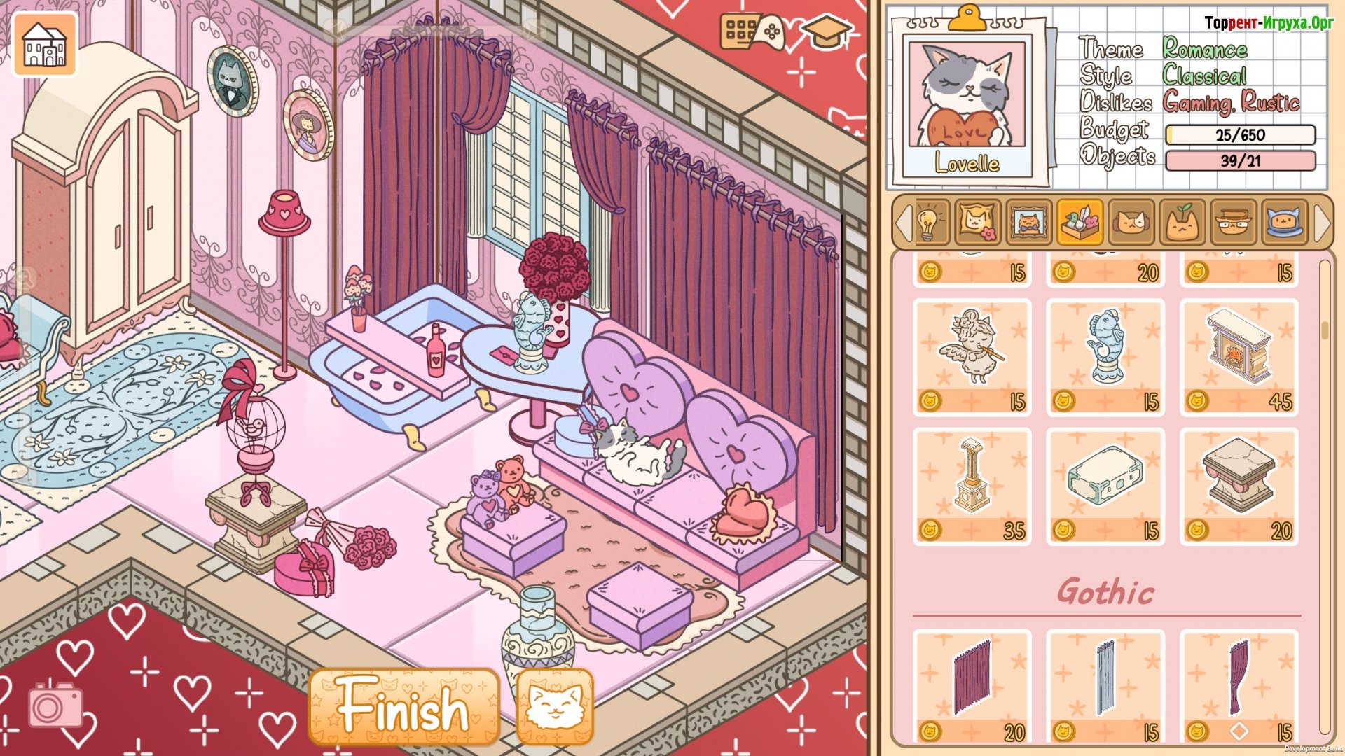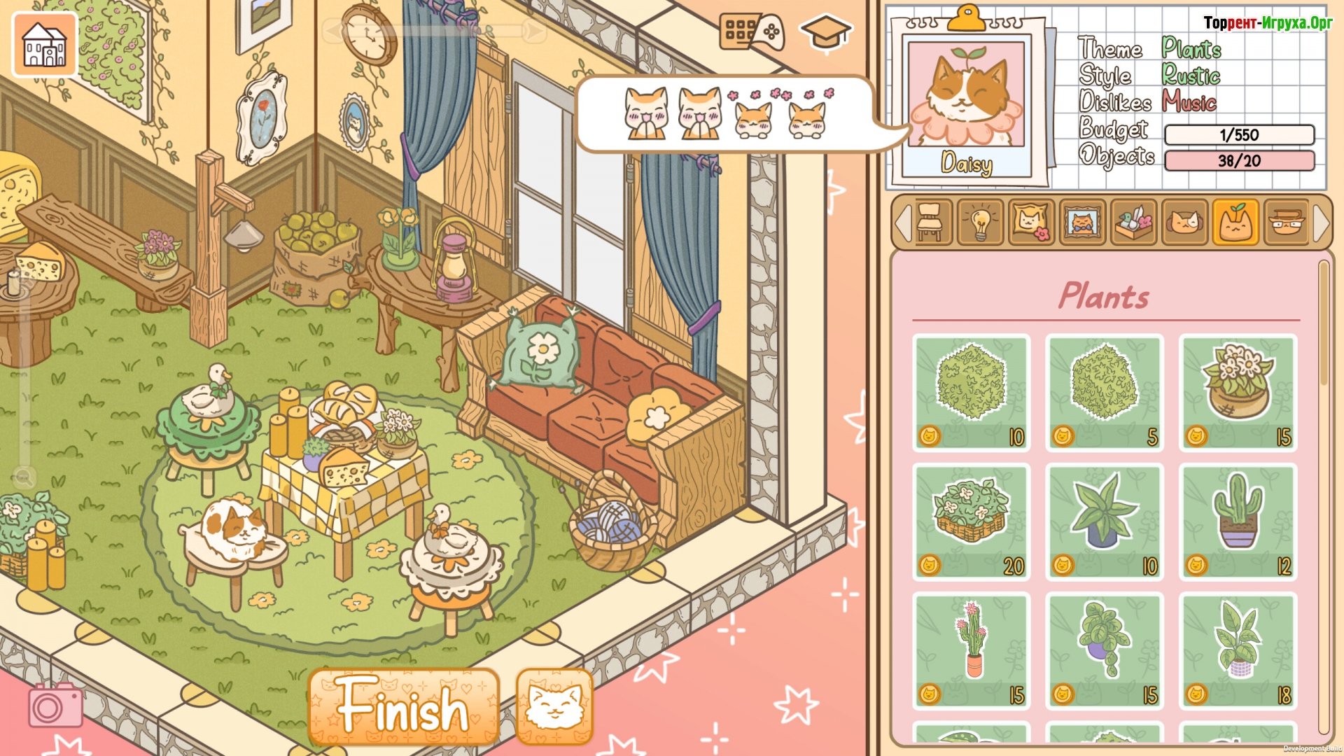У каждого кота свои предпочтения и неприязни: кому-то нравится деревенский стиль, а кому-то – лаконичность минимализма. Игроку необходимо учитывать мельчайшие детали при создании гармоничного пространства – от выбора мебели до декоративных элементов – чтобы заслужить одобрение своего клиента.