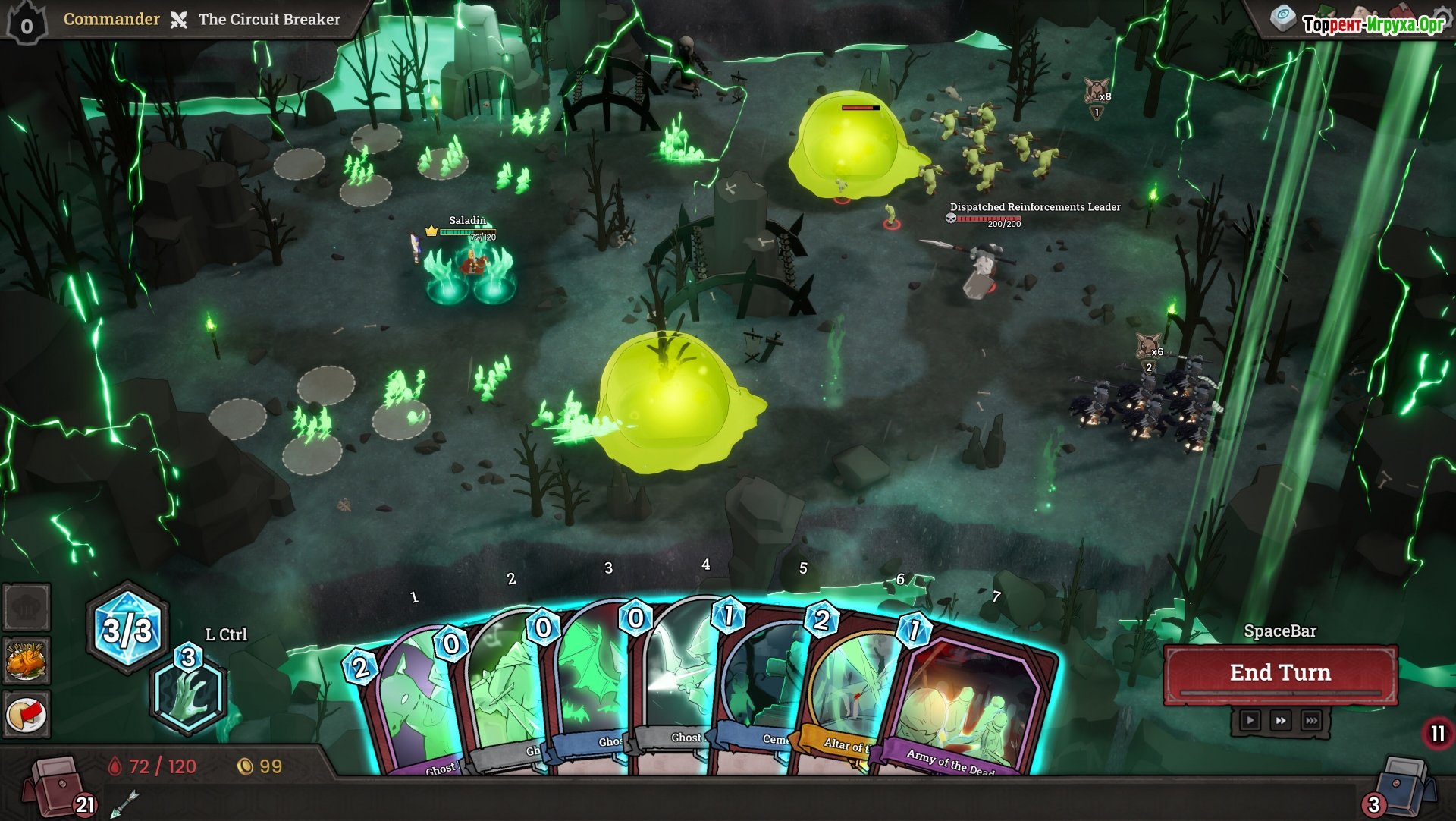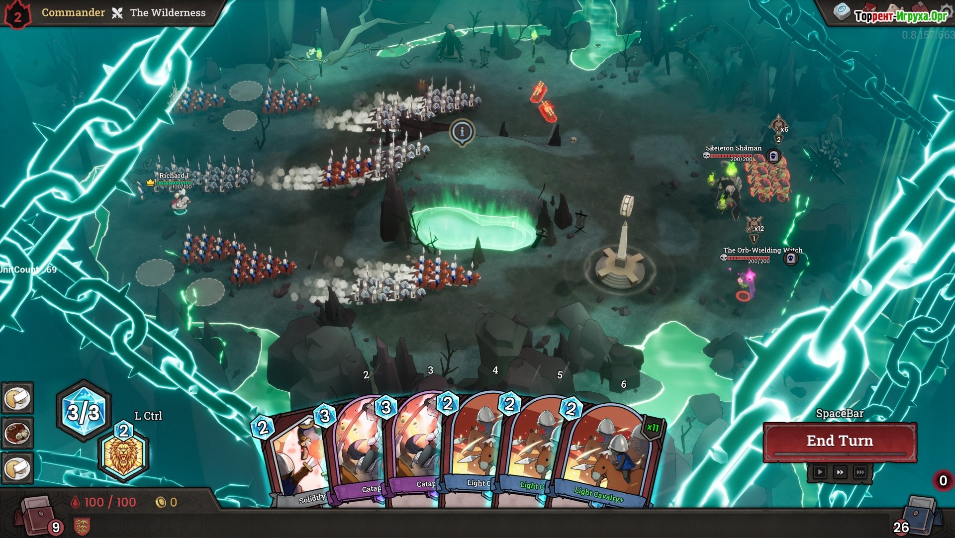 ## Особенности игры * Сочетание карточных механик и стратегий в реальном времени. * Огромный выбор рас и командиров, каждый из которых обладает уникальными способностями и характеристиками. * Динамичные и захватывающие сражения, требующие от игрока не только стратегического планирования, но и быстрой реакции. * Развитие и прокачка собственной колоды, участие в сражениях с врагами и решение событий, которые оказывают значительное влияние на игровой процесс.