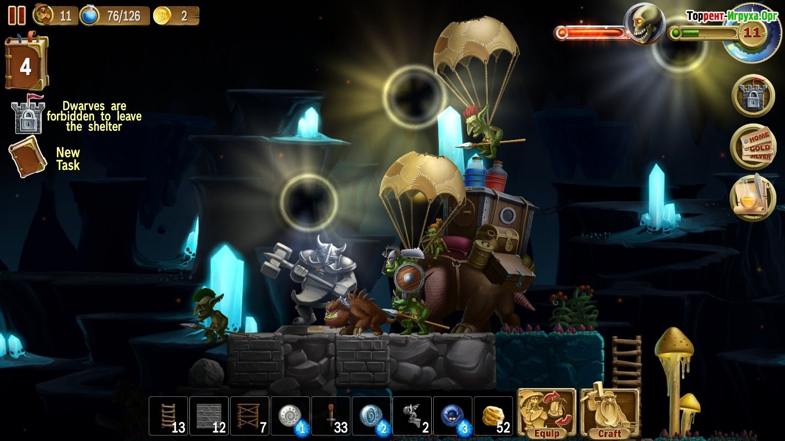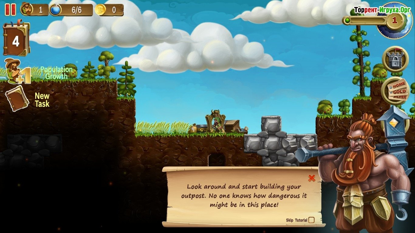 У вас будет практически неограниченная рабочая сила – гномы. Сначала их будет всего один, но со временем их число будет неуклонно расти. Ваша задача – эффективно управлять этими подопечными: один копает, другой отправляется в бой, третий занимается строительством, а вы обеспечиваете их пропитание, одежду, магическую поддержку и все необходимое.