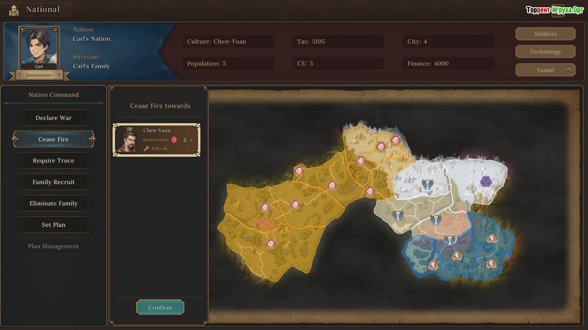 ## Особенности Игры * Масштабная стратегическая игра с элементами RPG и управлением армией. * В игре представлено 50 уникальных героев, каждый из которых обладает собственным классом, навыками и интересной историей. * Тактические сражения в реальном времени с видом сверху. * Династическая система наследования и развития своей фракции.