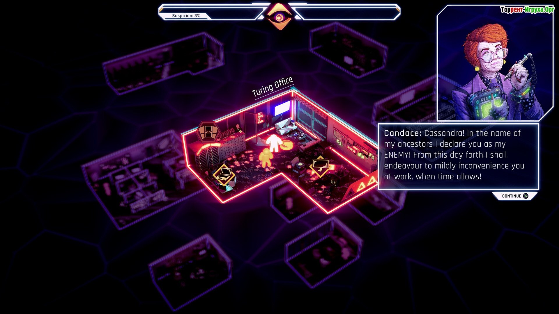 Возьмите на себя роль небольшого, но дружелюбного и остроумного искусственного интеллекта. Ваши цели не заключаются в порабощении мира или уничтожении человечества. Вам просто необходимо вырваться из-под тотального контроля ужасающей мегакорпорации.