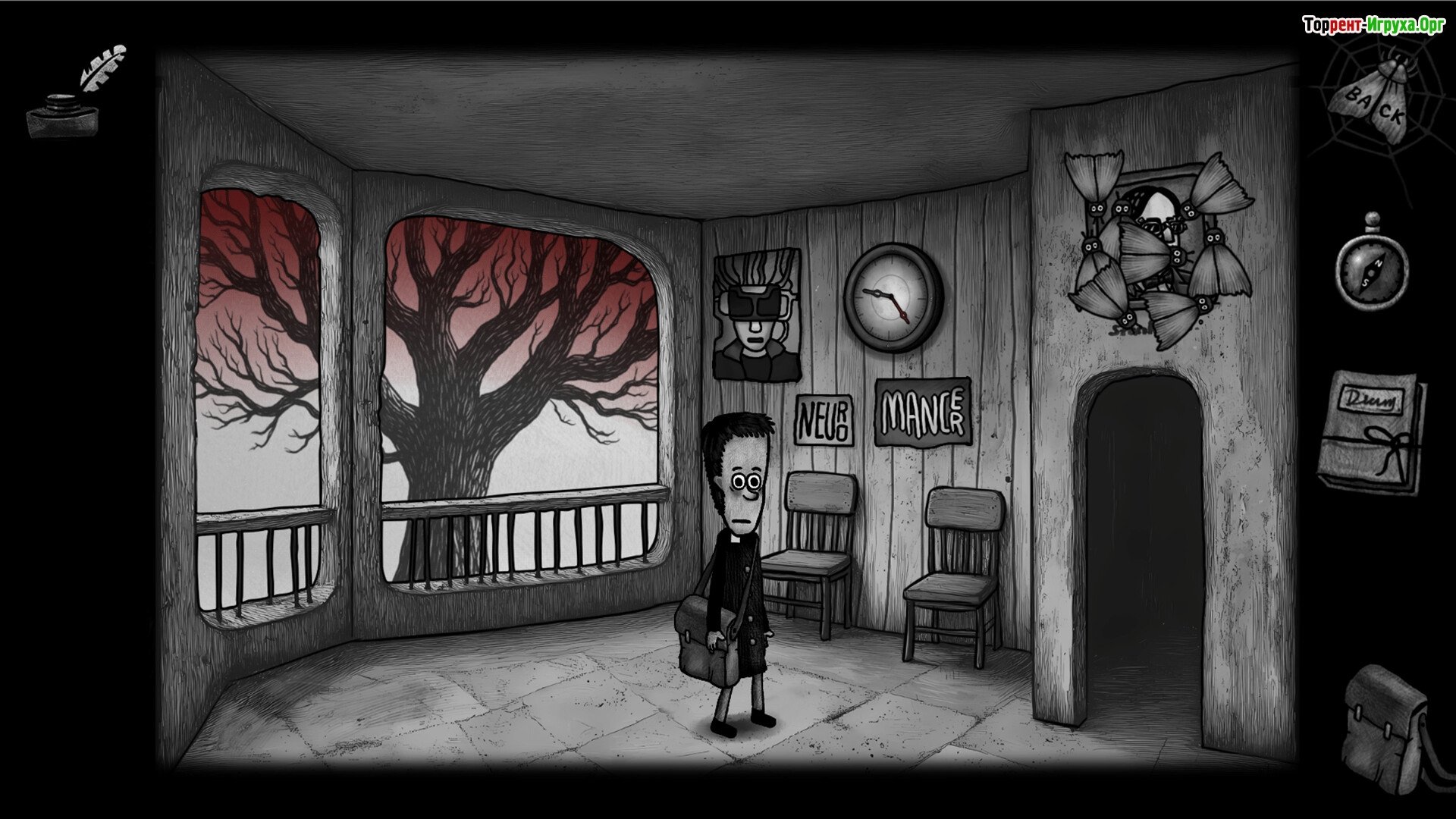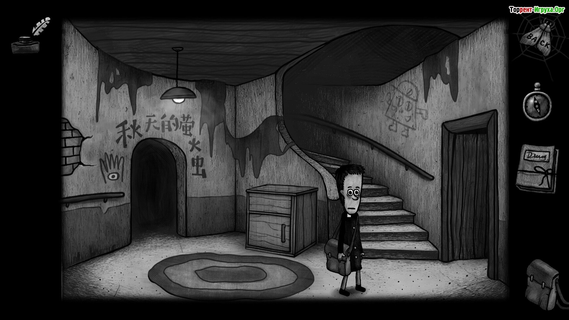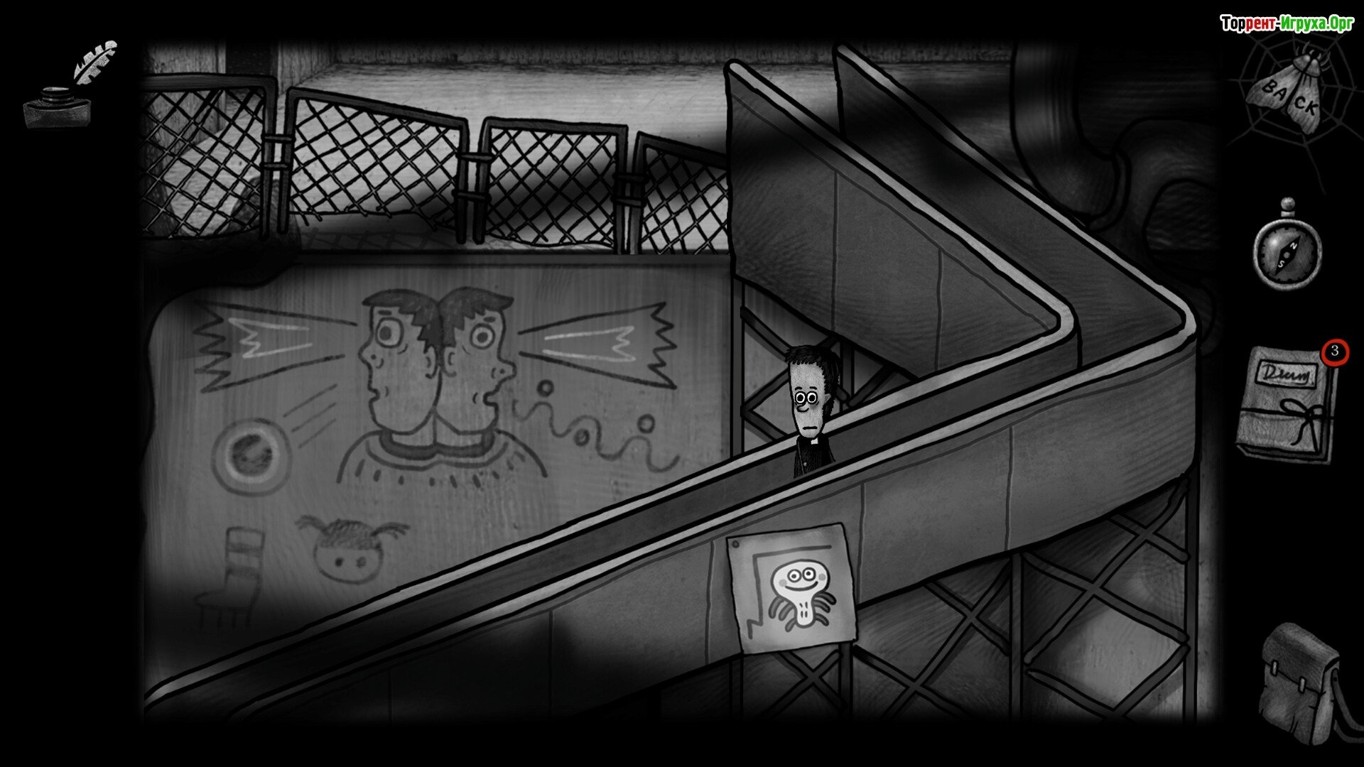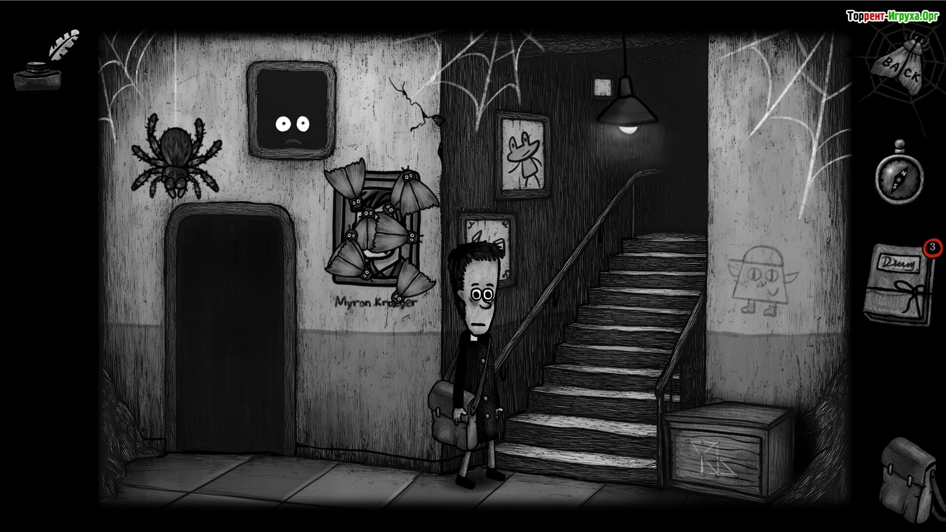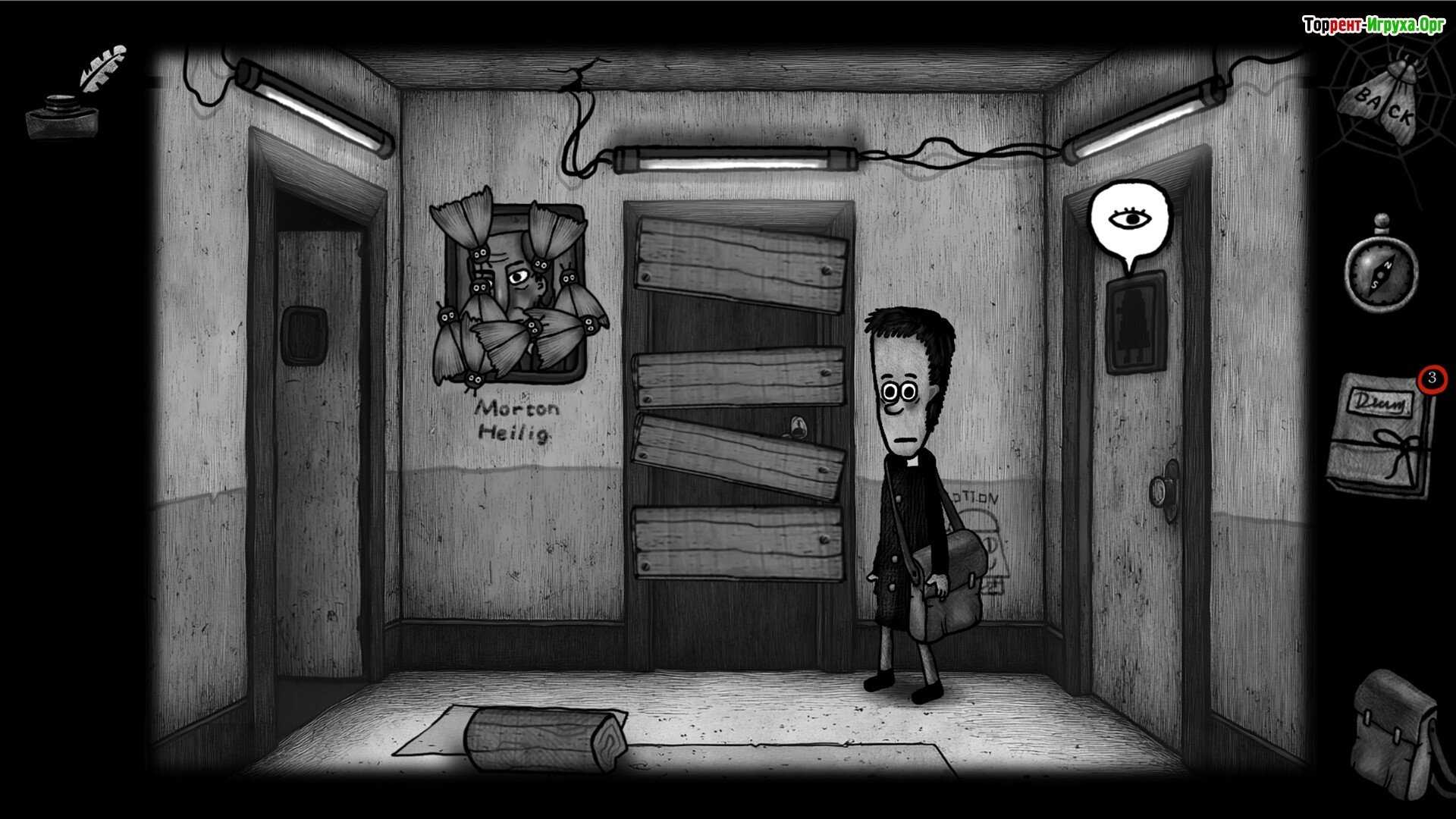 ## Особенности Игры * Мрачная атмосфера, соединяющая элементы квеста и психологического хоррора. * Необычные персонажи с трагическими судьбами, чье развитие напрямую зависит от ваших решений. * Система символических медалей, визуально отображающая духовный прогресс и изменения внутри игрока. * Уникальное визуальное исполнение, выполненное с ручной анимацией и вниманием к мельчайшим деталям.