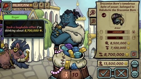 ## Особенности игры * Динамичная торговля, наполненная случайными событиями и сложными переговорами. * Шутливое повествование, запоминающиеся, эксцентричные персонажи и абсурдные ситуации. * Возможность развития харизмы, приобретения торговых навыков и кастомизации своего внешнего вида. * Аукционы, редкие находки и, конечно же, опасные “выгодные” предложения, которые могут привести к непредсказуемым последствиям.