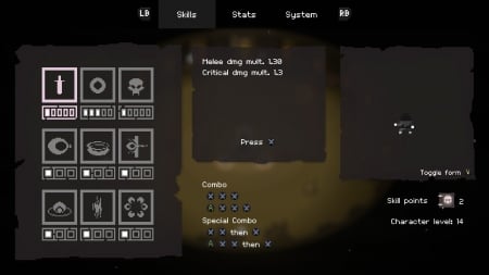 Особенности игры * Битвы в аркадном стиле, ориентированные на ближний бой. * Уникальная возможность использовать врагов против самих себя. * Система мета-прогресса, позволяющая развиваться между прохождениями. * Восемь печатей, каждая из которых ведет к финальной разгадке истории.