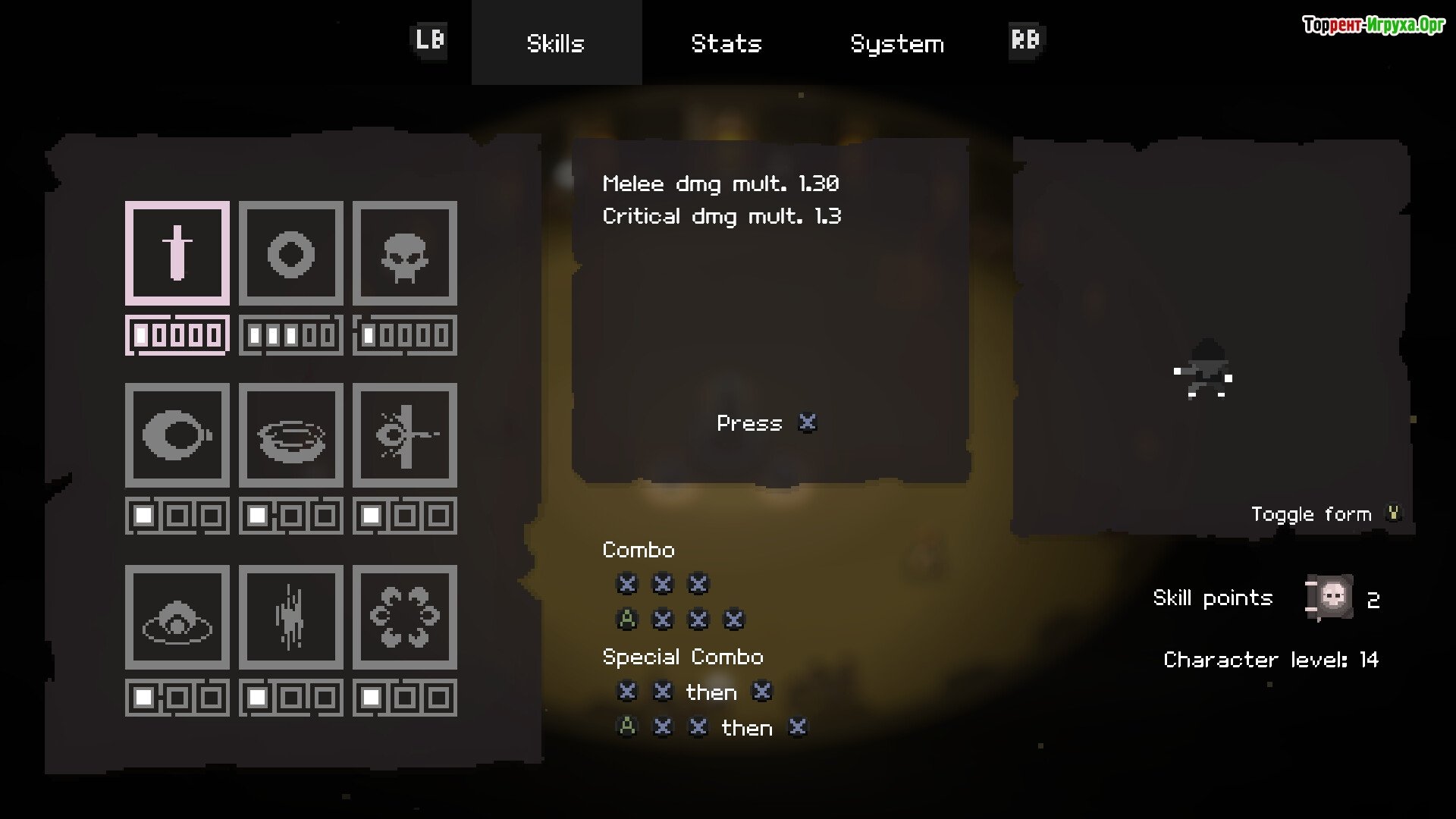С каждой попыткой вы продвигаетесь вперед, открывая новые навыки, комбинируя их и усиливая главного героя. Это позволяет вам всё глубже проникать в самое сердце тьмы. Ваша упорство и стратегическое мышление определят, сможете ли вы преодолеть восемь печатей и, наконец, освободиться от проклятия.