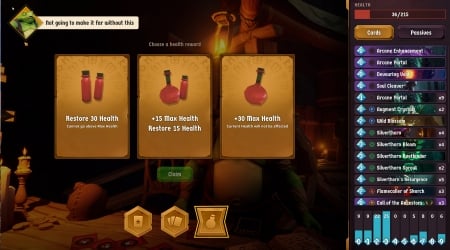 Особенности игры * Roguelike с акцентом на карточные механики. * Процедурная генерация контента для каждого прохождения, обеспечивающая уникальный опыт. * Уникальная система артефактов и пассивных навыков, позволяющая создавать разнообразные билды. * На каждом уровне вас ждут испытания и опасности, проверяющие ваши навыки и стратегическое мышление.
