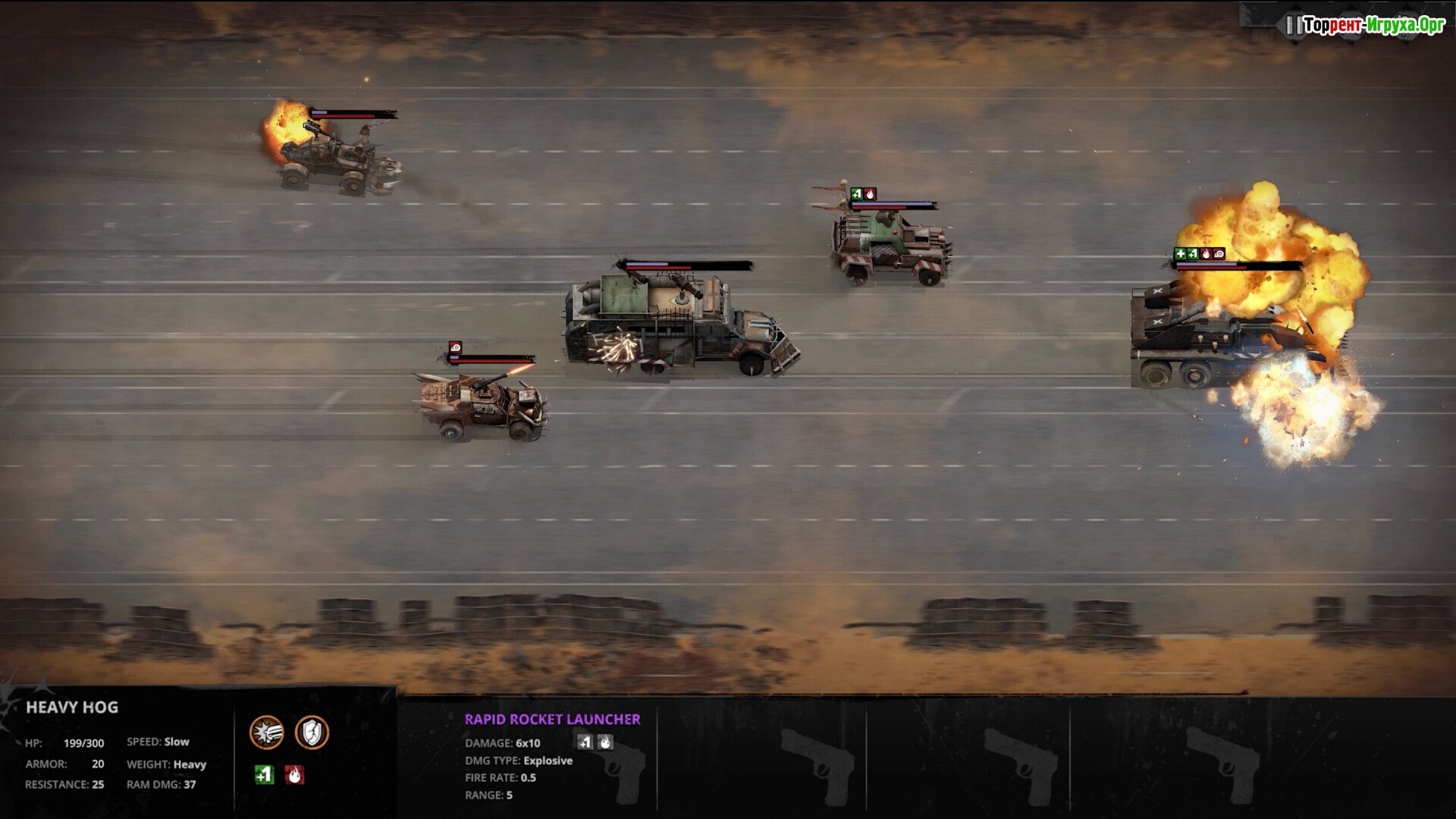 ## Особенности игры * Пошаговые автомобильные сражения * Динамическая экономика * Обширные территории, а также многое другое