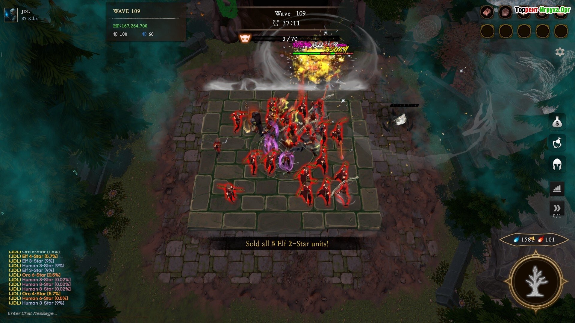 Поле боя подчиняется своим собственным правилам. Призыв юнитов происходит случайно – от рядовых солдат до могучих героев. Раса, которой вы управляете, определяет ваш стиль ведения боя: орки используют грубую силу, эльфы действуют с высокой точностью, а люди сочетают в себе оба подхода, балансируя между риском и стратегией. Игрок учится контролировать хаотичную ситуацию, принимая взвешенные решения.