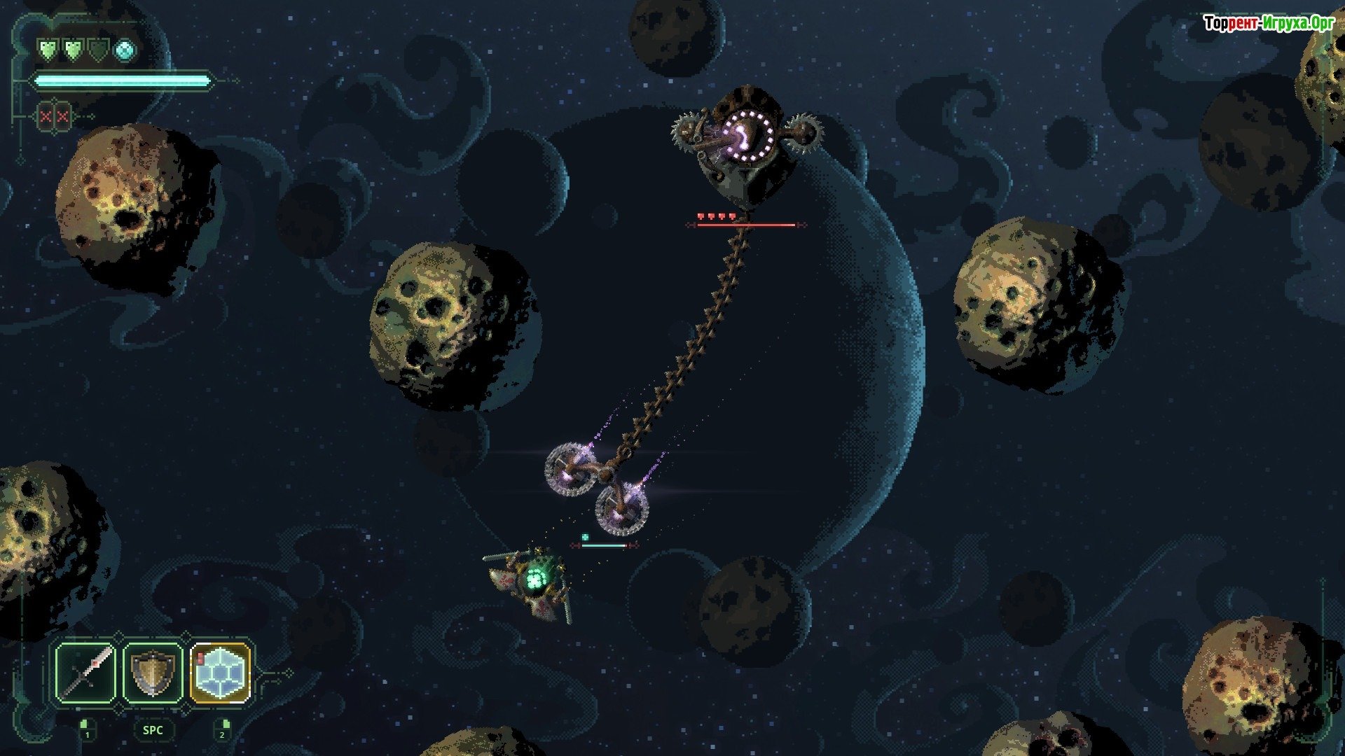 * Красочное пиксельное графическое оформление, дополненное нарисованными вручную иллюстрациями – создаёт поистине увлекательный проект. * Случайная генерация вселенной, ограниченное количество ресурсов и союзников – добавляют непредсказуемости и повышают сложность прохождения. * Возможность захватывать добычу с поверженных врагов, модернизировать свой корабль и продолжать игру после смерти героя, чтобы совершенствоваться в мастерстве.