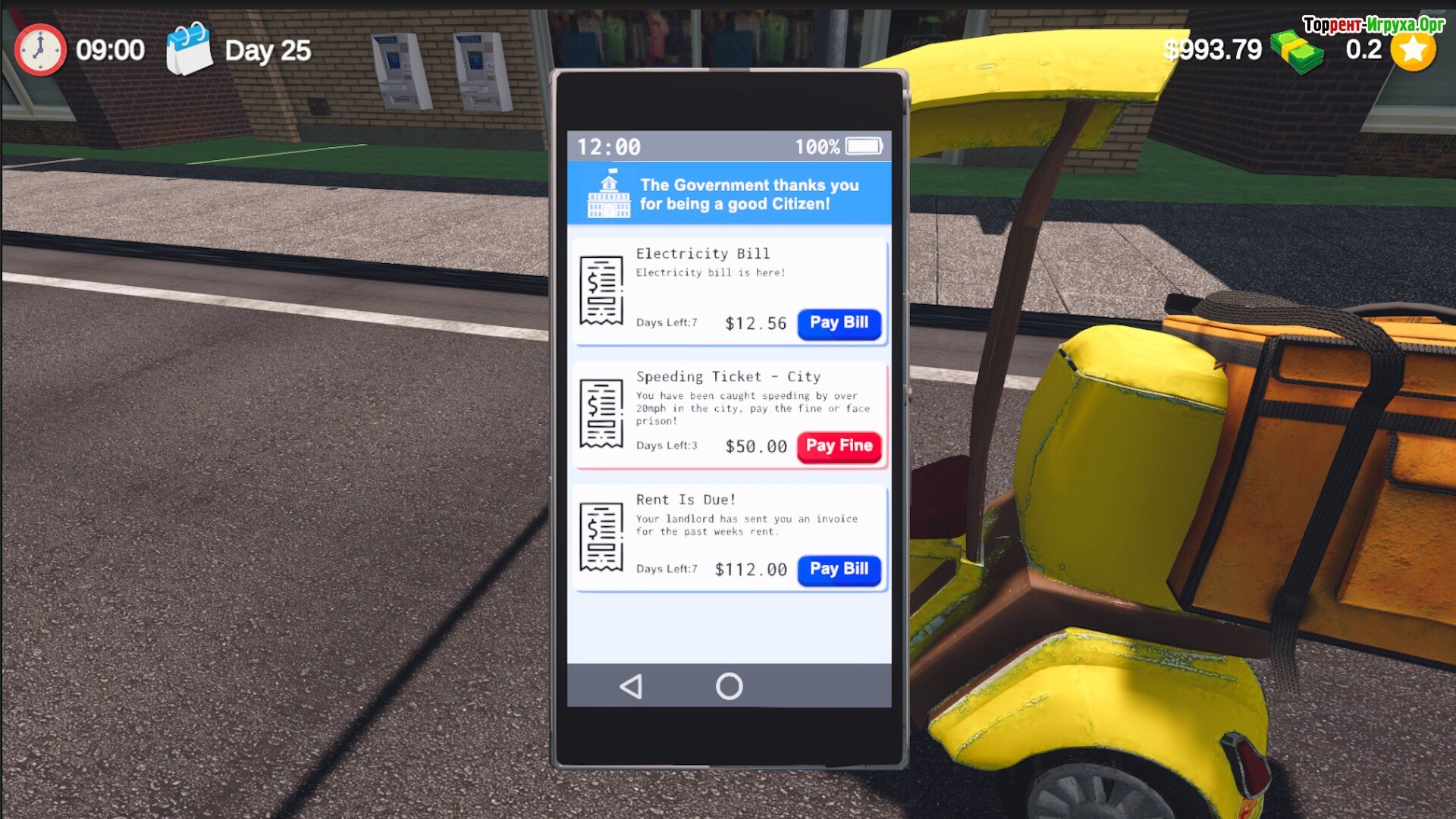 ## Ключевые особенности игры * Реалистичная модель работы водителя доставки еды, сочетающая элементы стратегии и симулятора. * Широкие возможности по улучшению автомобиля и другого оборудования для повышения эффективности доставки. * Динамичный игровой мир, населенный разнообразными клиентами и непредсказуемыми ситуациями. * Богатый набор мини-игр и развлечений, включая обработку электронных писем, посещение клубов и игры в классические компьютерные игры.