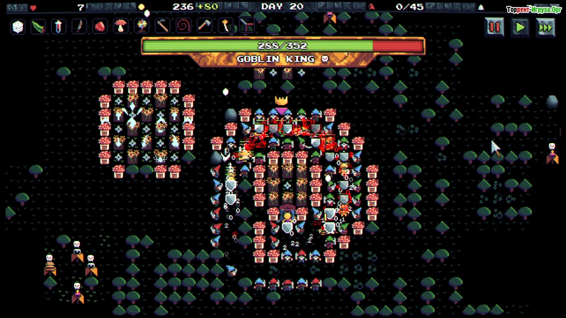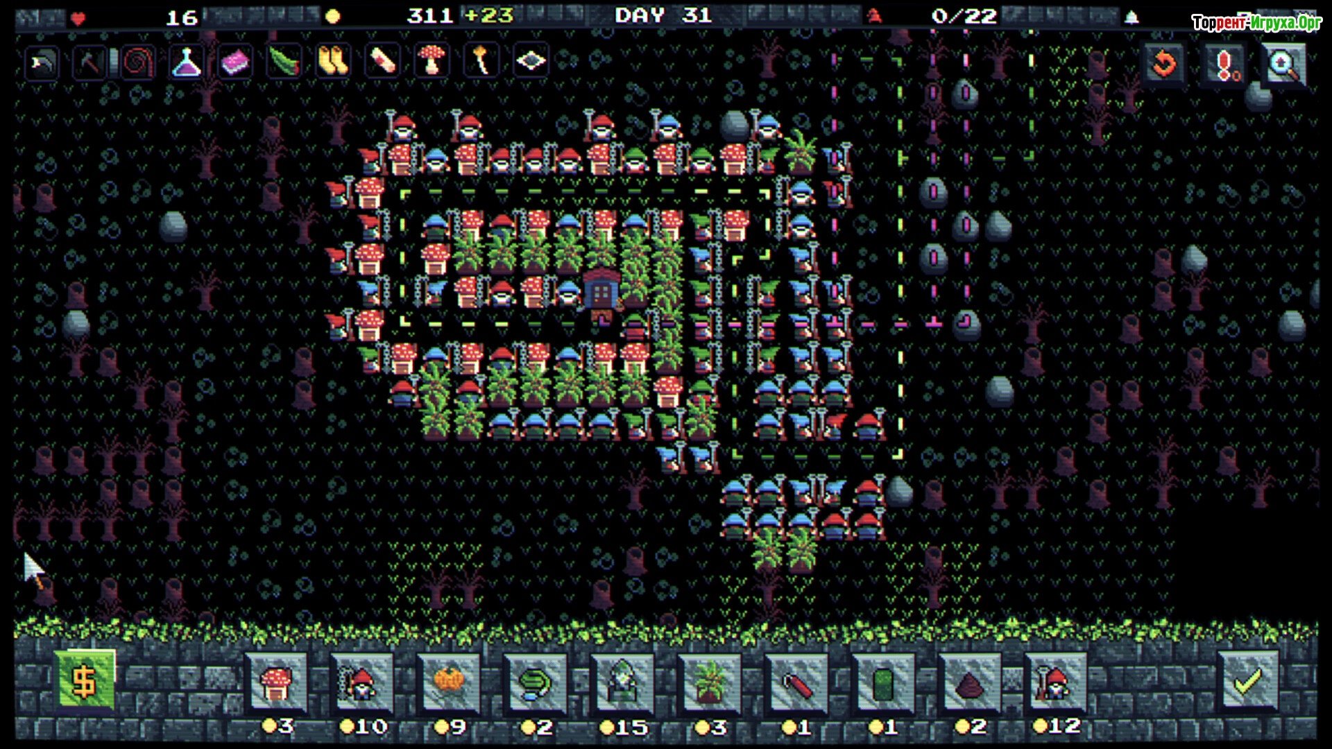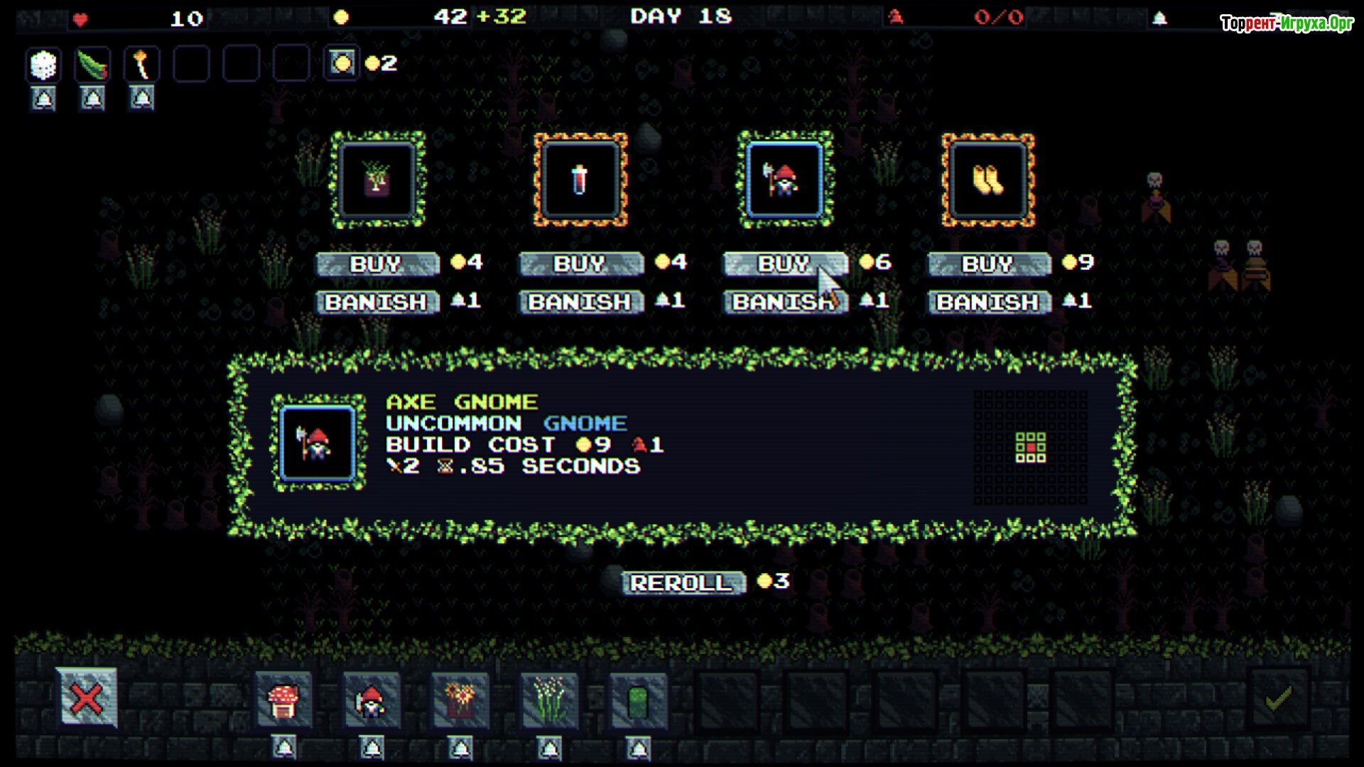 Защита и развитие Вам предстоит построить эффективную стратегию для защиты своей территории. Каждое прохождение игры становится уникальным благодаря случайной генерации карт и врагов. Тщательно планируйте размещение ваших гномов, улучшайте их оборону и комбинируйте различные реликвии, чтобы выжить.
