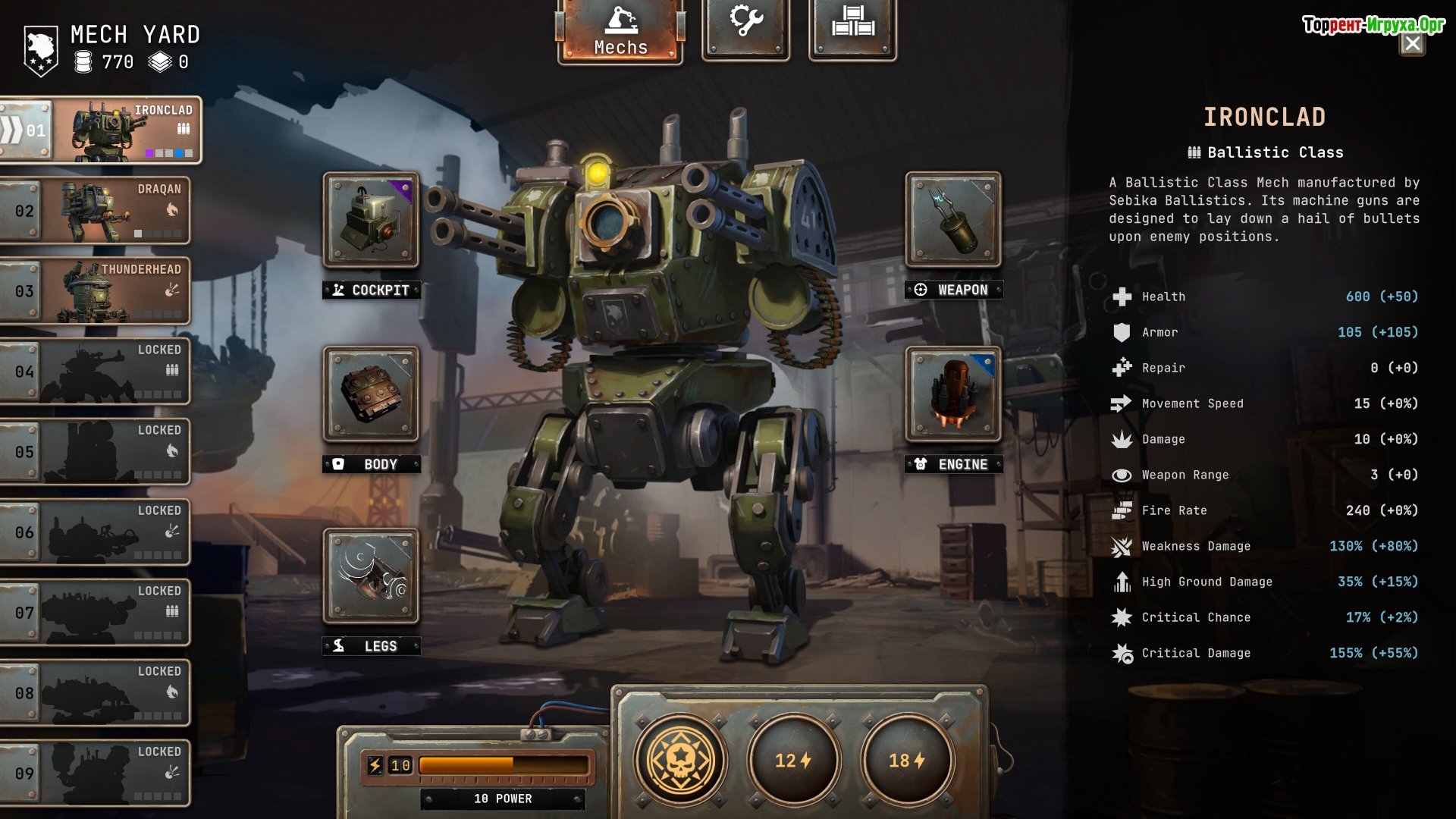 Особенности игры: * Продвинутый формат стратегии в реальном времени. * Возможность настройки своего собственного отряда мехов. * Каждое задание – уникальный вызов.