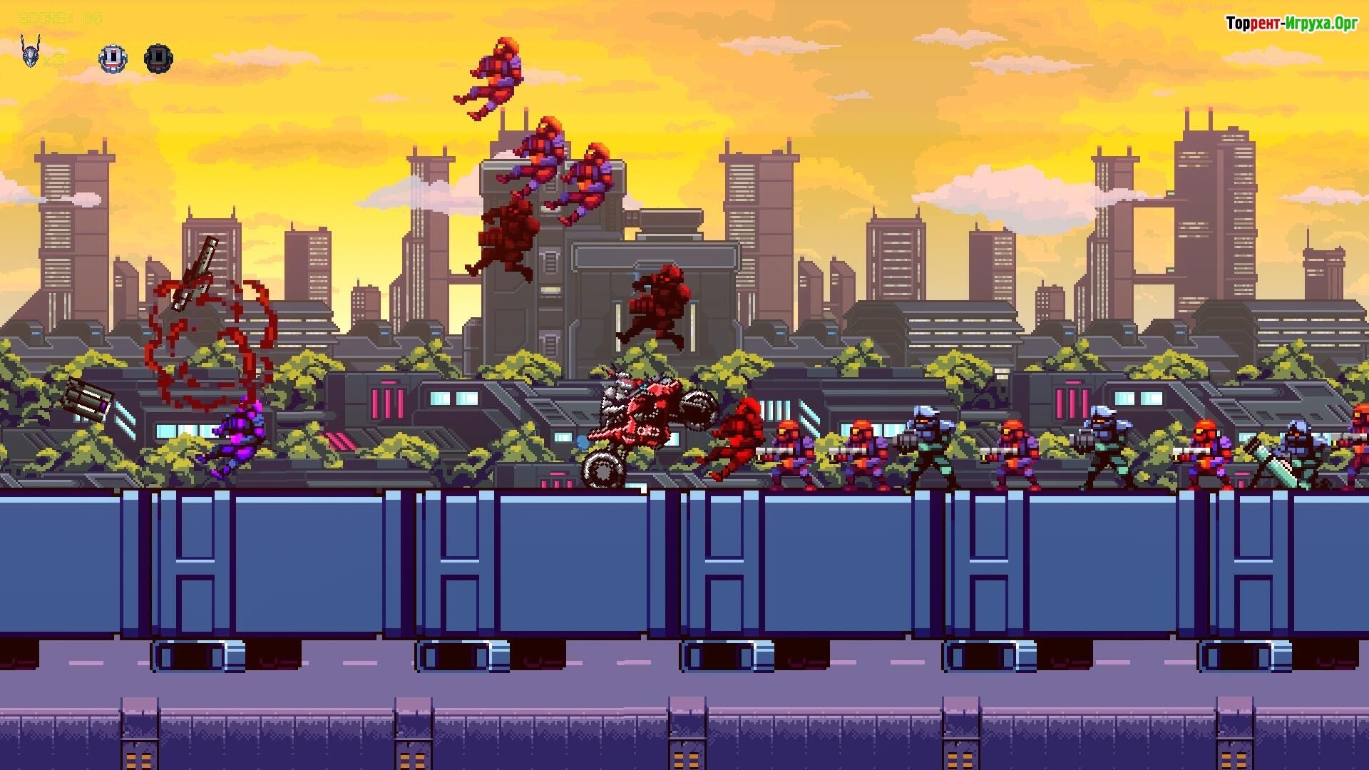 Gundroid – это захватывающий сайд-скроллер с футуристической атмосферой, где пиксельная графика идеально сочетается с динамичным экшеном и мощным саундтреком в стиле металла.