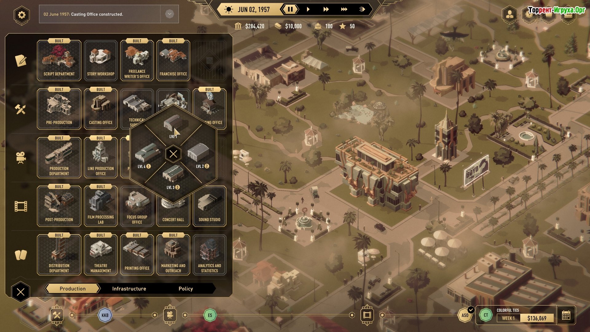 Создайте свою собственную студию, о которой вы всегда мечтали! Представьте, вы можете вырастить кинематографического монстра, способного покорить мир своими эпическими блокбастерами. Но это лишь один из путей. Может быть, вас манит создание собственной студии-бутика, заключение контрактов с новаторскими режиссерами и покорение всех кинофестивалей? Выбор, конечно же, за вами. Или, может быть, вы захотите построить фабрику трэша, чтобы бросить вызов самому понятию «хорошего вкуса»? Ведь вы мечтаете залить все экраны потоком крови и слизи? В данном случае нет необходимости в четко определенных целях или ограничениях, главное – наслаждаться процессом и оставаться на плаву. Прежде чем приступить к игре, не забудьте скачать Hollywood Animal по торренту на свой ПК.