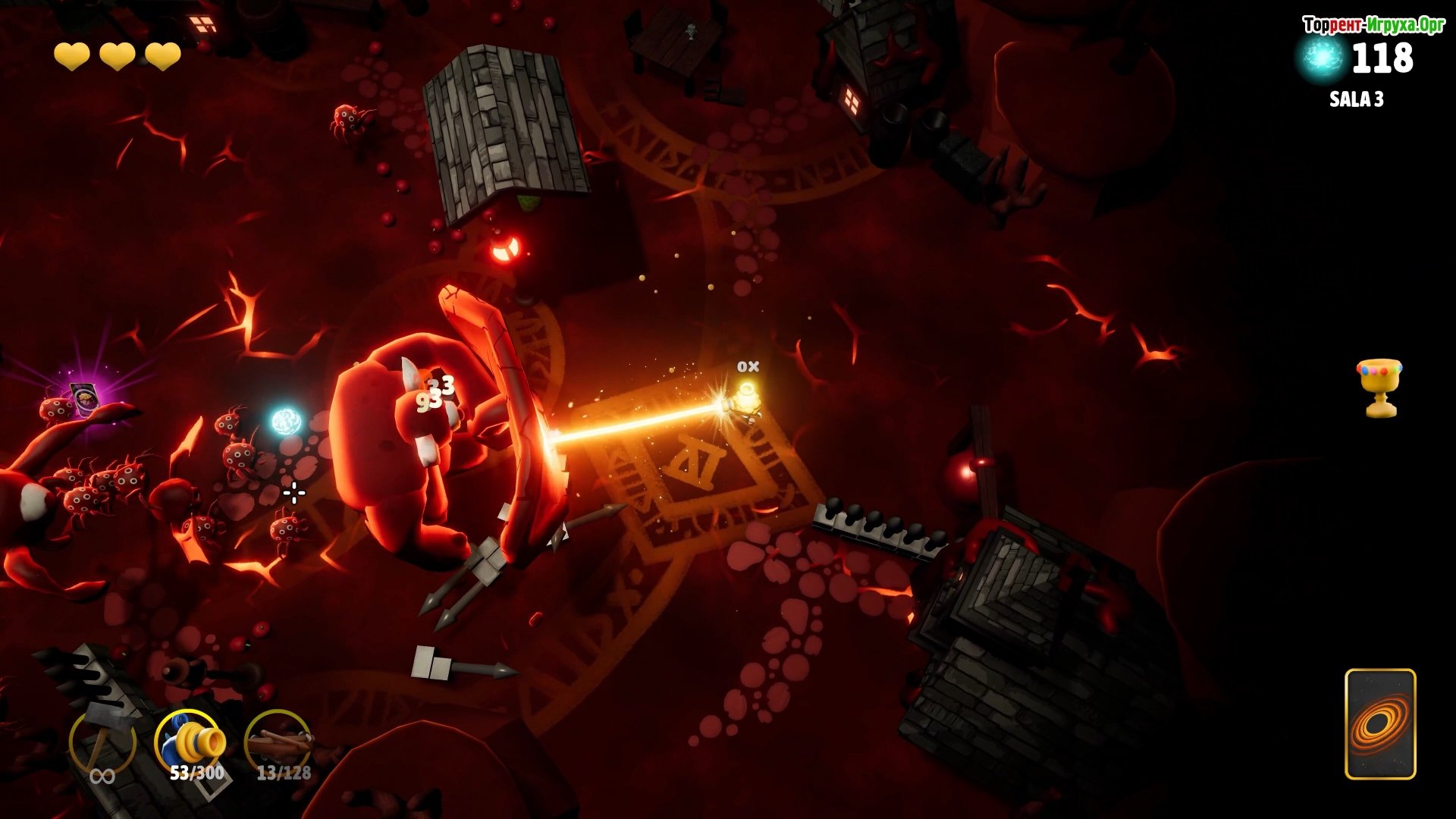 Игрок оказывается в эпицентре столкновения ангельских символов с демоническими существами, а динамичная физика разрушения превращает каждую арену в поле бушующего хаоса.