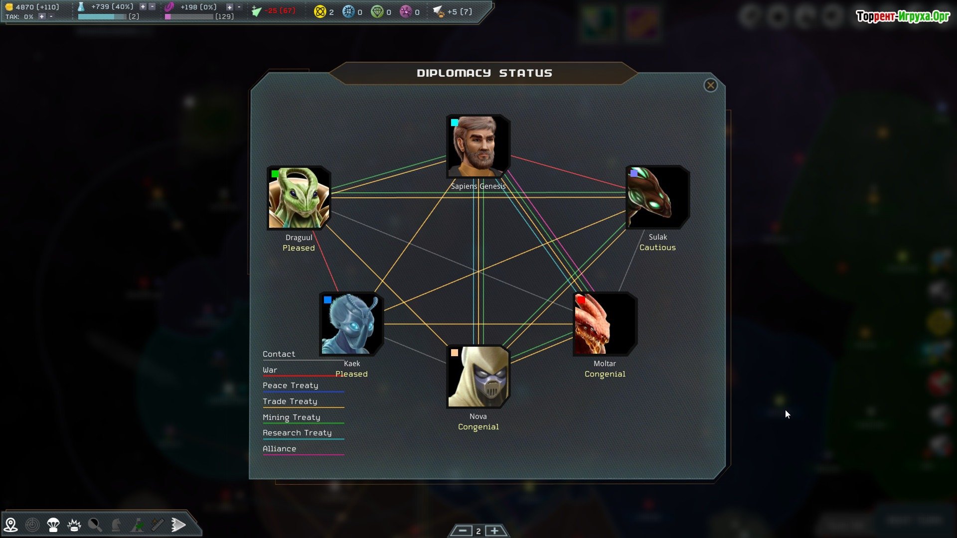 Создайте свою собственную галактику, выбрав одну из шести различных рас для игры. Каждая раса обладает своими уникальными особенностями и историей.