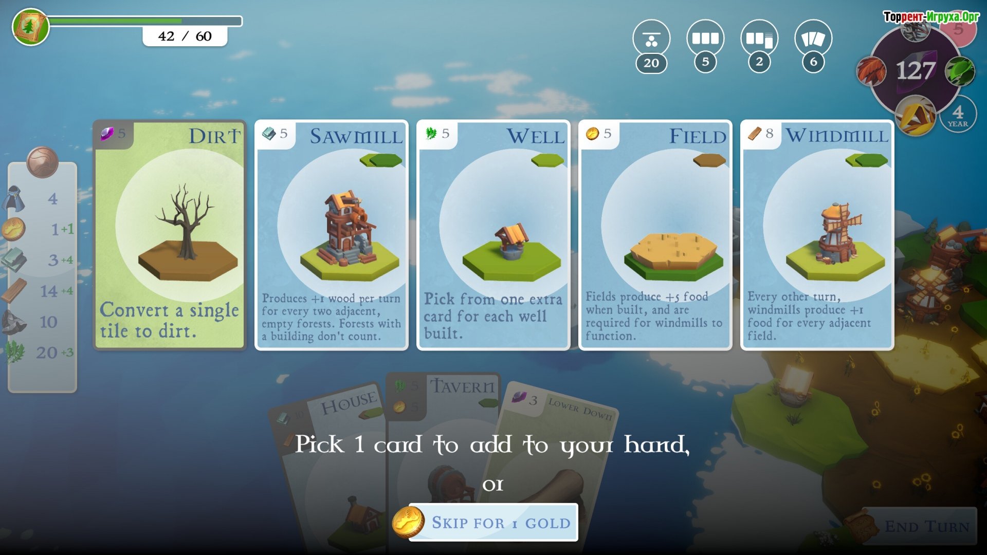 Каждое принятое решение оказывает влияние на судьбу колонии. Вы можете посадить лес, добыть камень или расширить береговую линию. Потребности поселенцев становятся главной задачей, так как они растут вместе с развитием острова. Карты – это не просто ресурсы, а инструмент для написания собственной истории.
