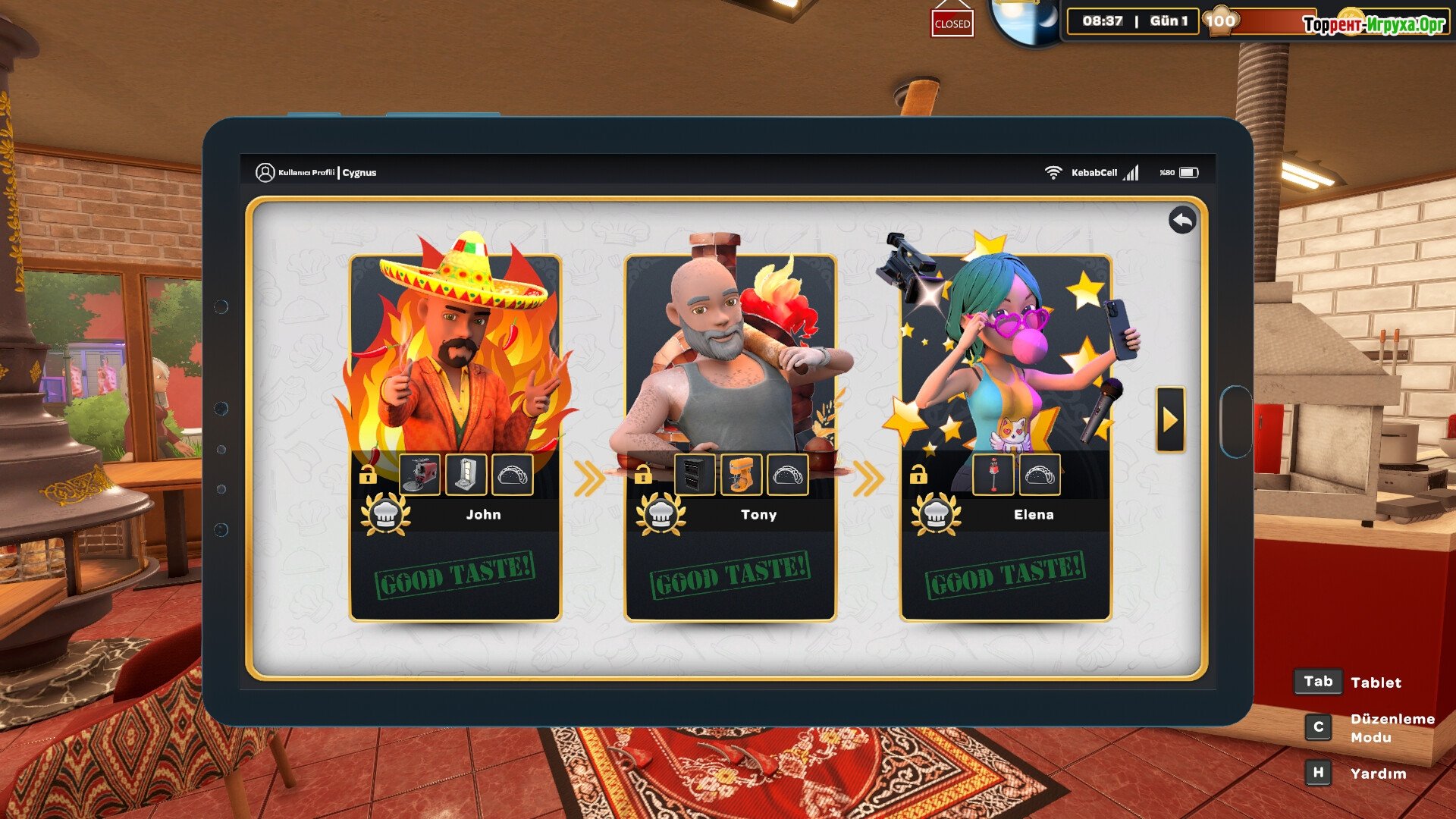 В вашем распоряжении около 60 уникальных рецептов. Ваша задача – создать максимально сбалансированное меню, чтобы получать стабильный доход. Хотите привлечь больше посетителей в свой ресторан? Тогда разработайте самую привлекательную вывеску! Для начала вам необходимо скачать игру Kebab Chefs! - Restaurant Simulator через торрент на свой ПК.