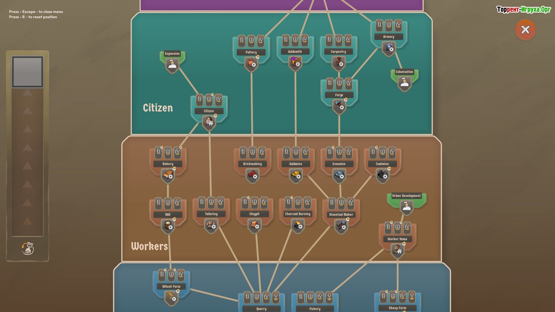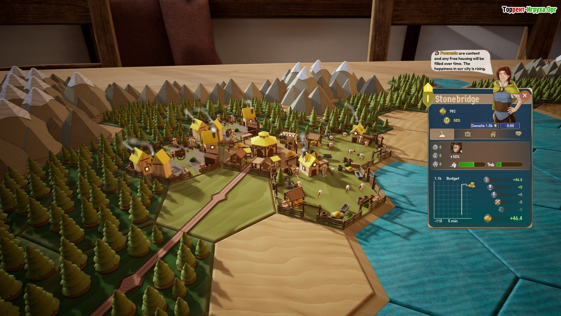 ## Где торговля важнее меча Каждое поселение рождается и развивается своим собственным путём. Кто-то добывает камень и строительные материалы, кто-то производит продукты питания, а кто-то просто стремится к тихой и размеренной жизни. Ваша задача – лишь направлять, строить, соединять и внимательно наблюдать за происходящим. Горожане сами организуют торговлю, платят налоги и радуются, когда у них всё хорошо. Вы являетесь вдохновителем, способствующим их процветанию.