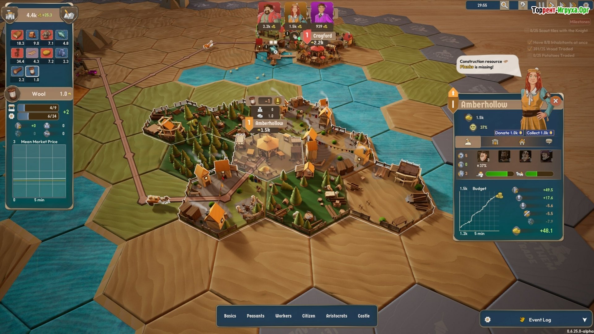 ## Особенности игры * Уютный, выполненный в деревенском стиле, визуальный ряд с живыми, оживленными городами. * Автоматическая система торговли, основанная на балансе ресурсов и текущем спросе. * Система счастья жителей напрямую влияет на ваш доход и процветание империи. * Ненасильственные решения и мир, населенный добрыми конфликтами, создают уникальный игровой опыт.