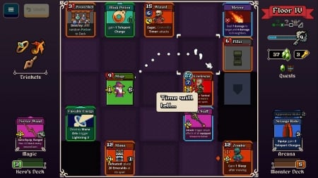 ## Особенности игры * Продвинутая система создания колоды, включающая более 100 карт для разных стилей игры. * Интуитивно понятный интерфейс, обеспечивающий удобную навигацию и принятие решений. * Каждое улучшение колоды может кардинально изменить вашу стратегию и стиль игры. * Сложные враги и уникальные комбинации карт делают каждое сражение неповторимым.