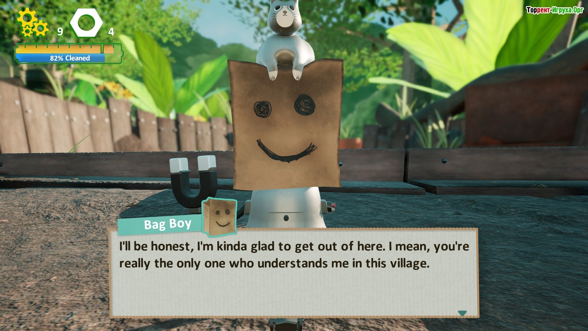 ## Особенности игры: ## * Спокойное исследование мира в теле маленького робота. * Решение оригинальных головоломок, используя обычную английскую булавку. * Узнавайте истории других персонажей и значительно очищайте мир, оказывая помощь. * Собирайте золотые винтики, чтобы открывать новые главы и помогать другим роботам.