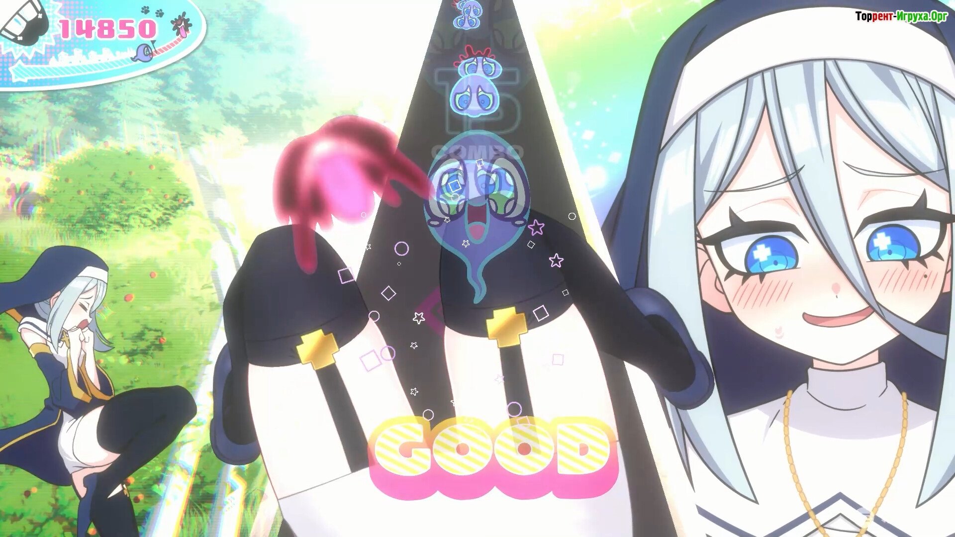 Души, словно злобные волны, атакуют с глубины экрана, и именно вы должны быть готовы – управляя парой бёдер, чтобы вовремя "прищипывать" их. Точность ваших движений в синхроне с ритмом напрямую влияет на силу очищения. Управление оказалось простым и интуитивно понятным, однако, удержать идеальный ритмичный рисунок – задача не из легких.