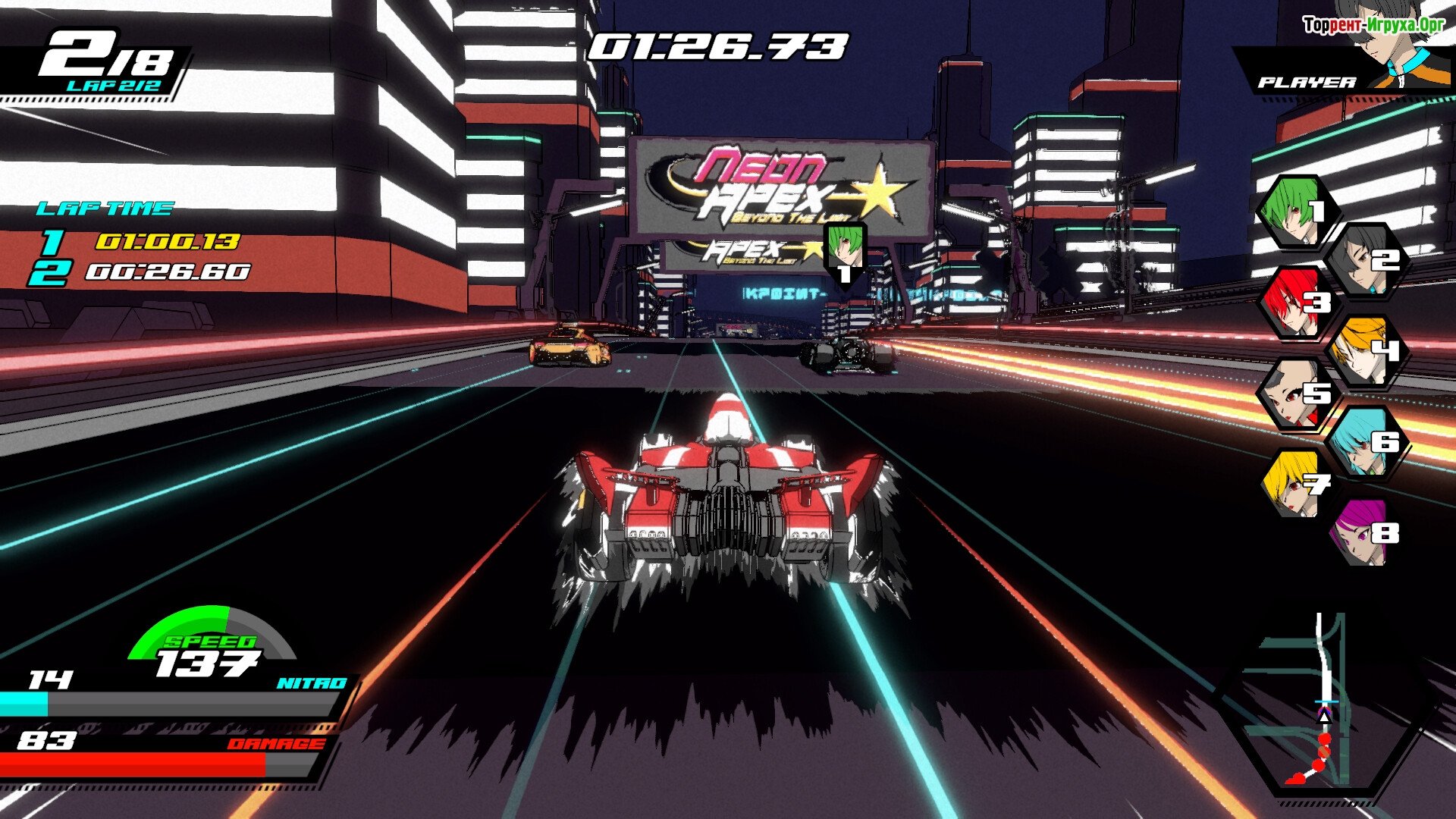 Игровой сюжет Действие игры разворачивается в постапокалиптической Земле 2124 года. Здесь все не так просто, как кажется, и истину можно узнать лишь на трассе… Добро пожаловать в Neon Apex! В этой гоночной лиге участвуют лишь самые достойные, где победа достигается лишь за счет невероятных скоростей и безумных виражей.