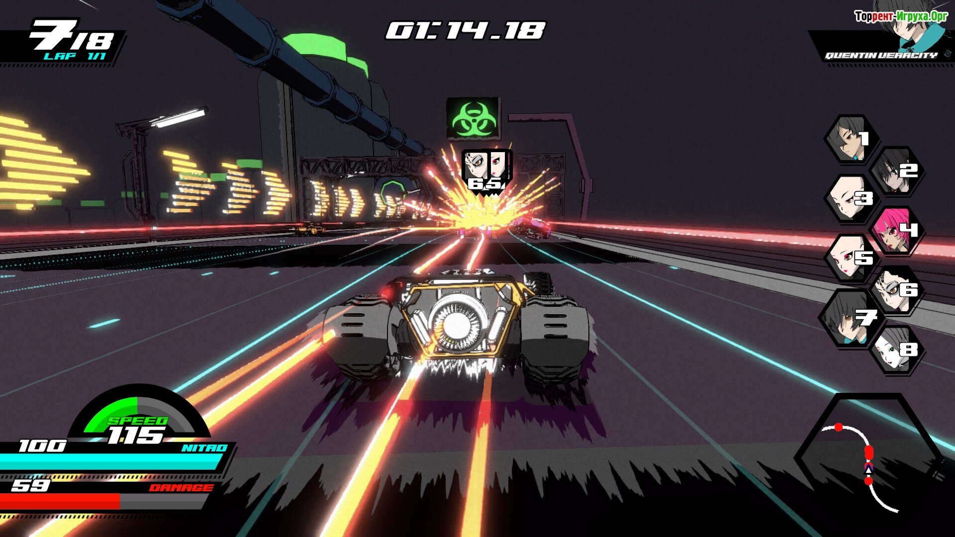 Первоочередная задача – выбор подходящего вам гонщика. В Neon Apex собрались лучшие пилоты, и каждый из них мечтает доказать своё превосходство. Но им придется столкнуться с достойными соперниками: кибернетически модифицированными людьми и продвинутыми ИИ-андроидами. Кто же станет настоящим чемпионом?