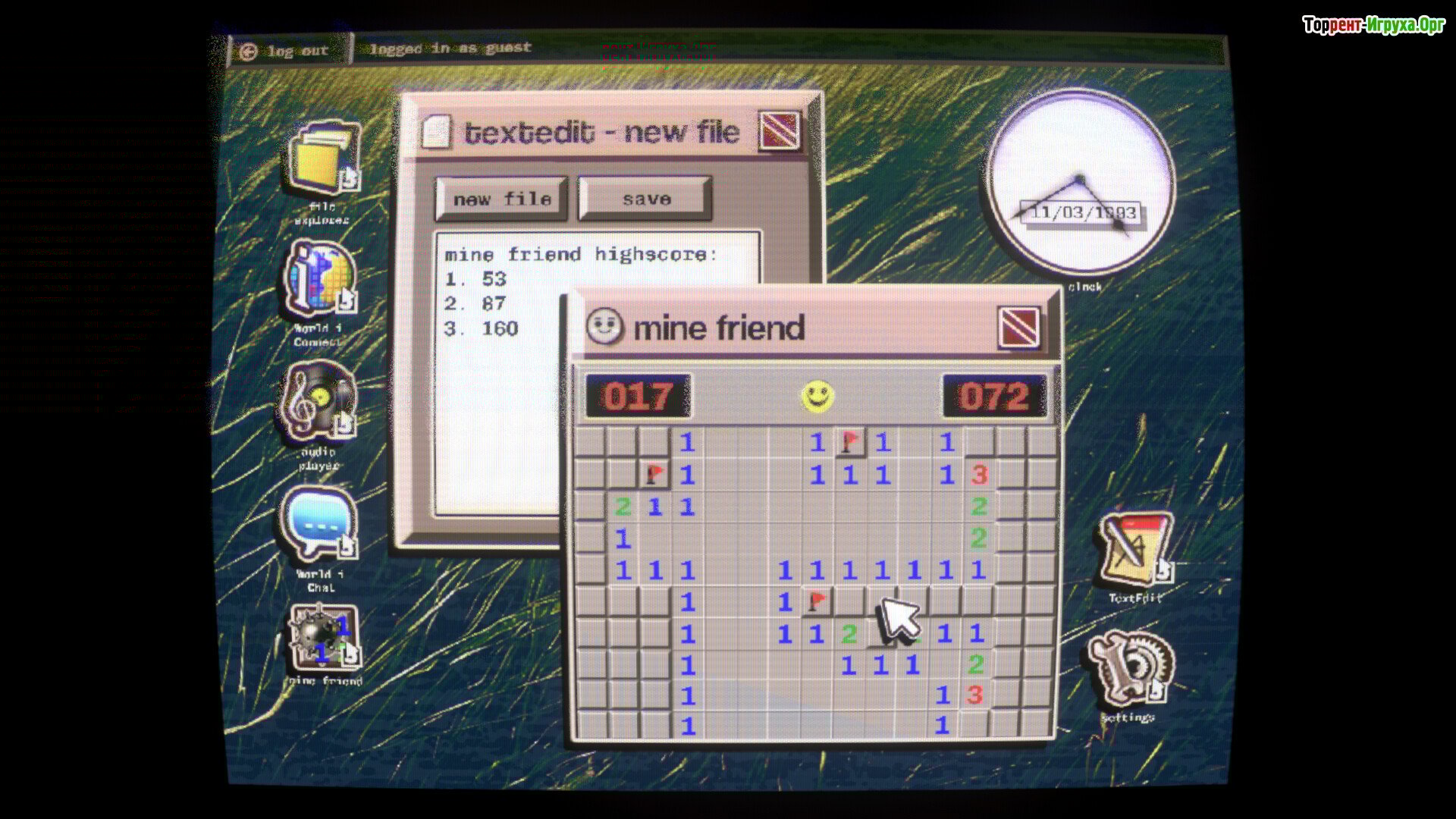 Насыщенная атмосфера, имитирующая псевдо-90-е: устаревшие интерфейсы, гул монитора и звук работы флоппи-диска создают неповторимый фон.