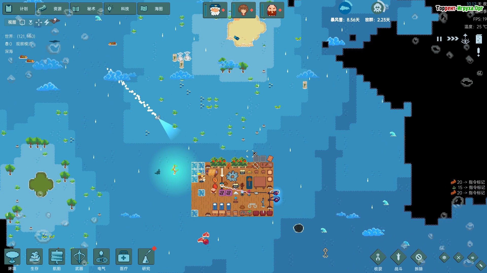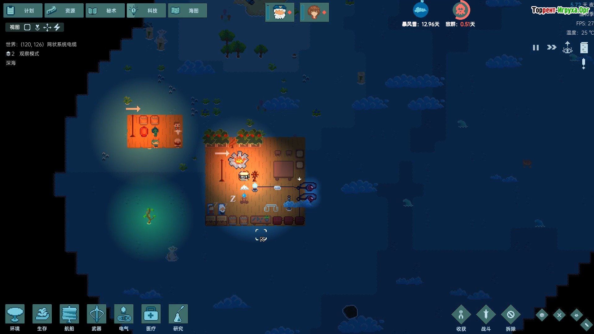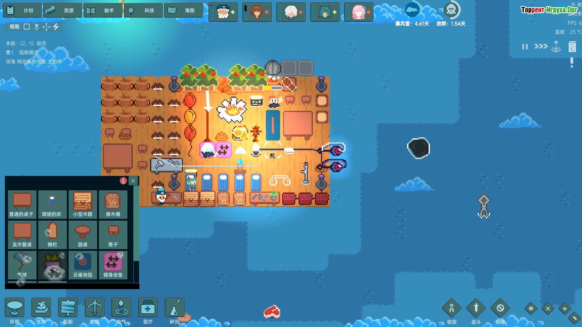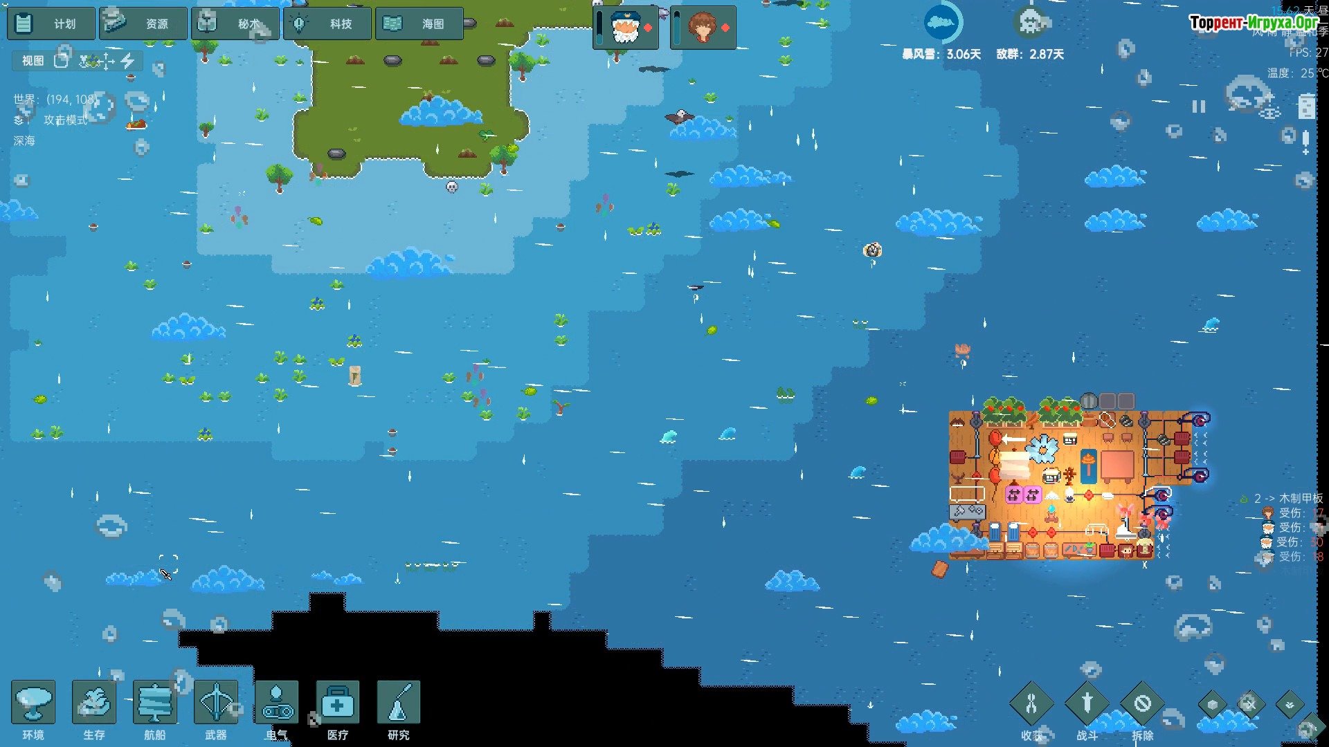 Игровой процесс Начните с постройки небольшого плота и неспешного плавания по океану. Параллельно собирайте древесину и расширяйте свое пространство, строя такие сооружения, как кухня, навес для отдыха и другие полезные зоны. Не забывайте собирать водоросли, которые плавают мимо, ловить рыбу и другие продукты, и даже обращать внимание на «мусор» – часто его можно продать другим выжившим.