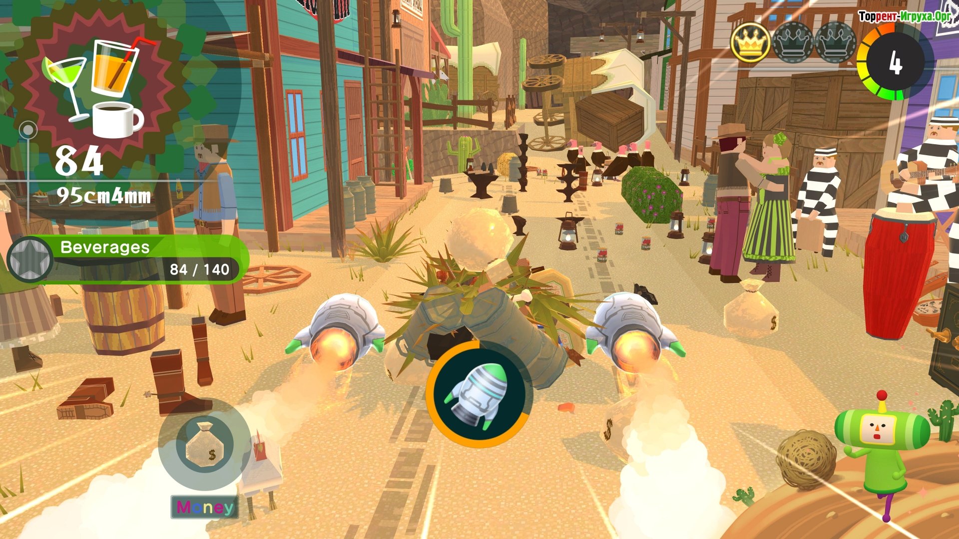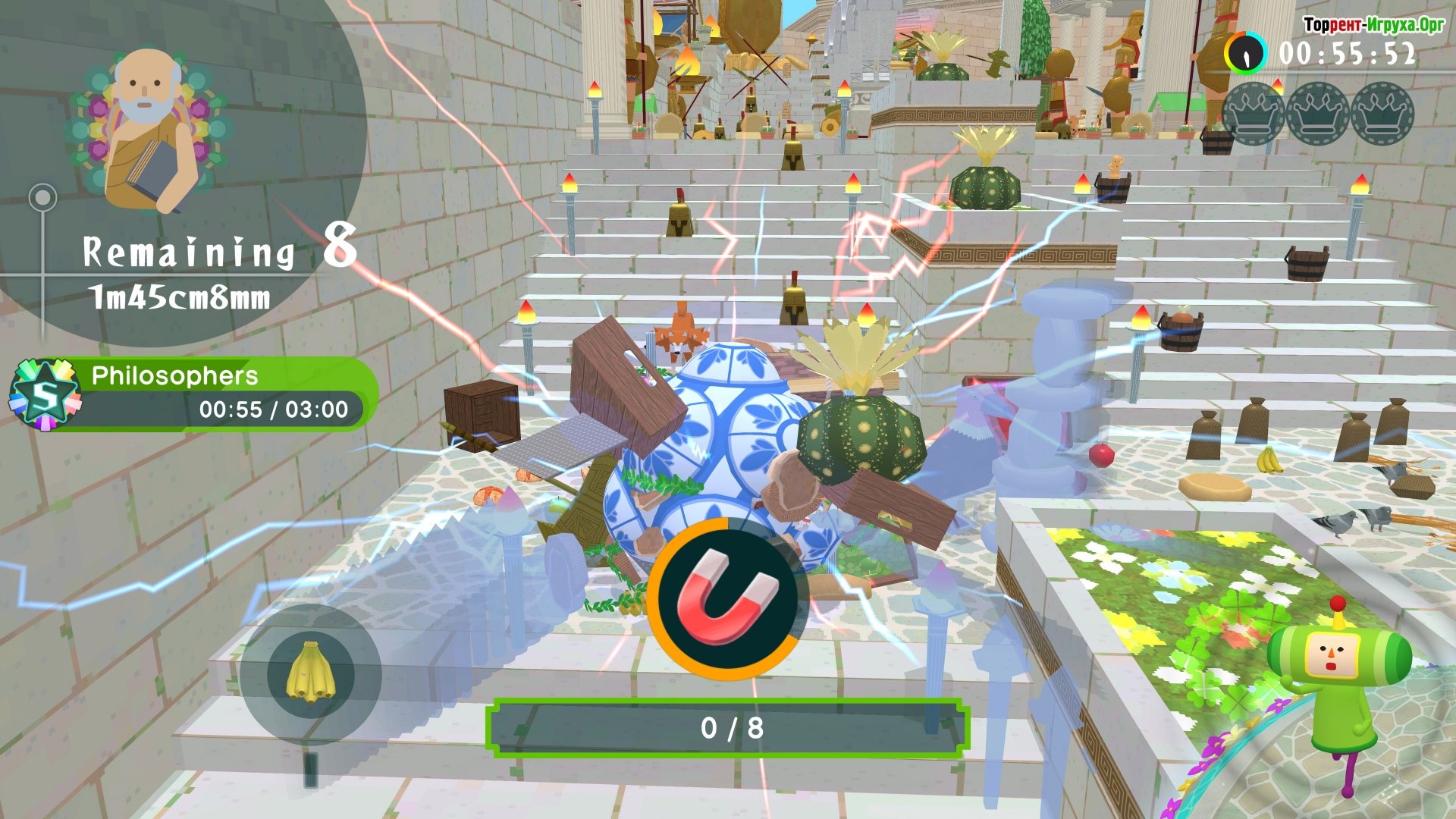 ## История, закатившаяся во времени После неудачного эксперимента Короля, мир превратился в хаотичную смесь эпох. Динозавры живут бок о бок с небоскрёбами, а самураи с остервенением спорят с пиратами. Покатайте свой катамари сквозь прошлое и будущее, собирая не только предметы, но и раскрывая смысл их существования. Чем больше становится ваш шар, тем ближе вы приближаетесь к новой вселенной.