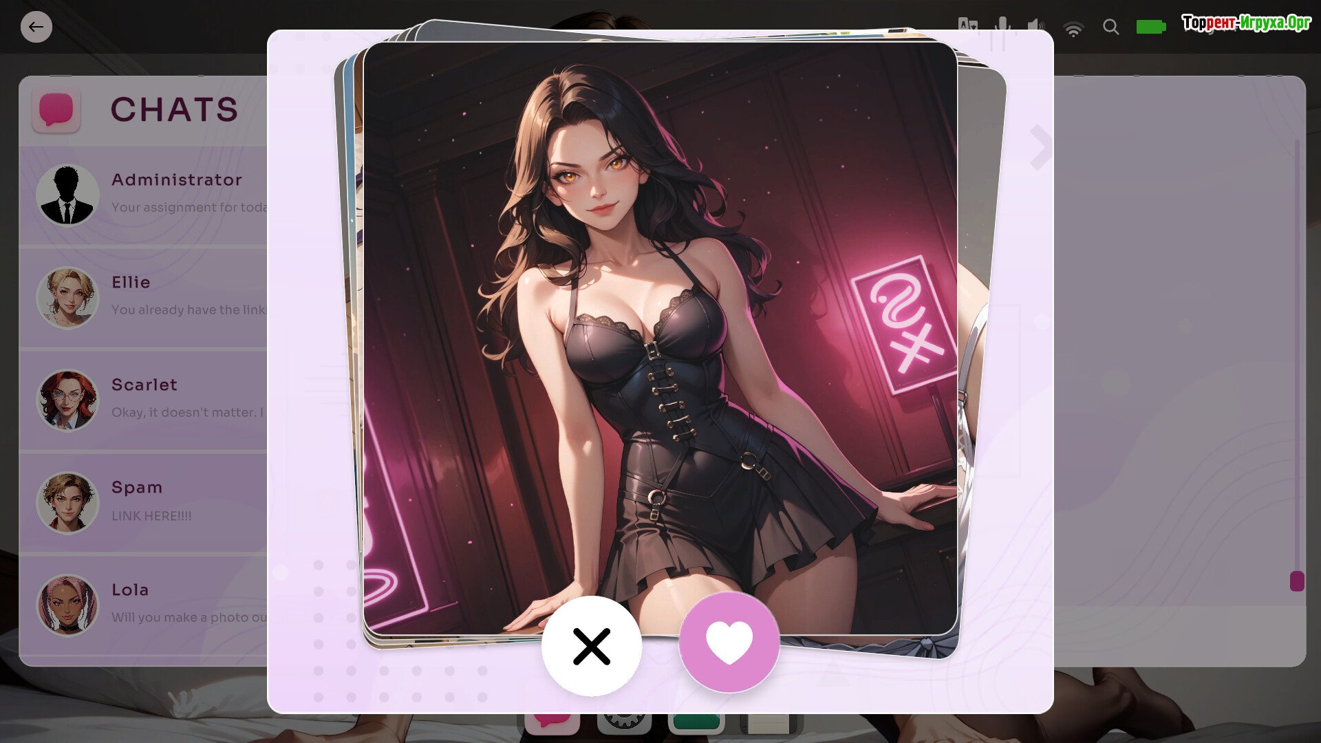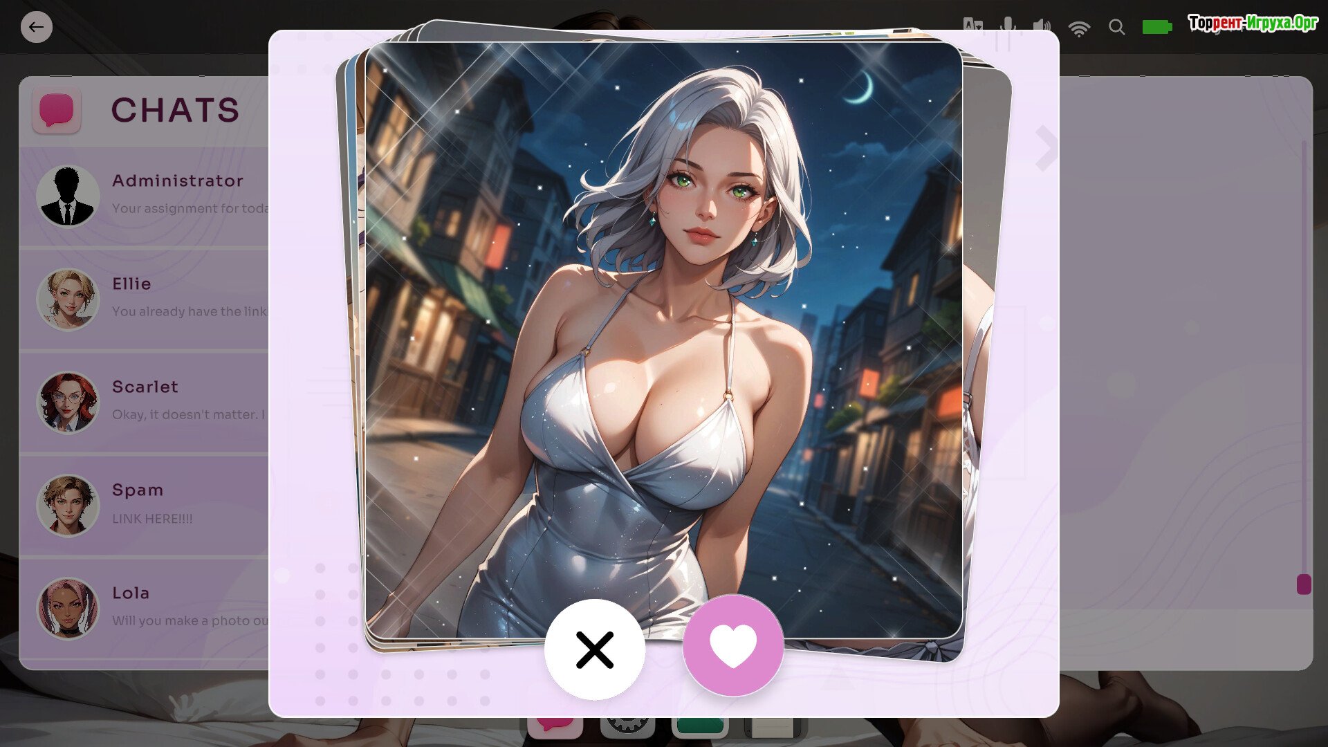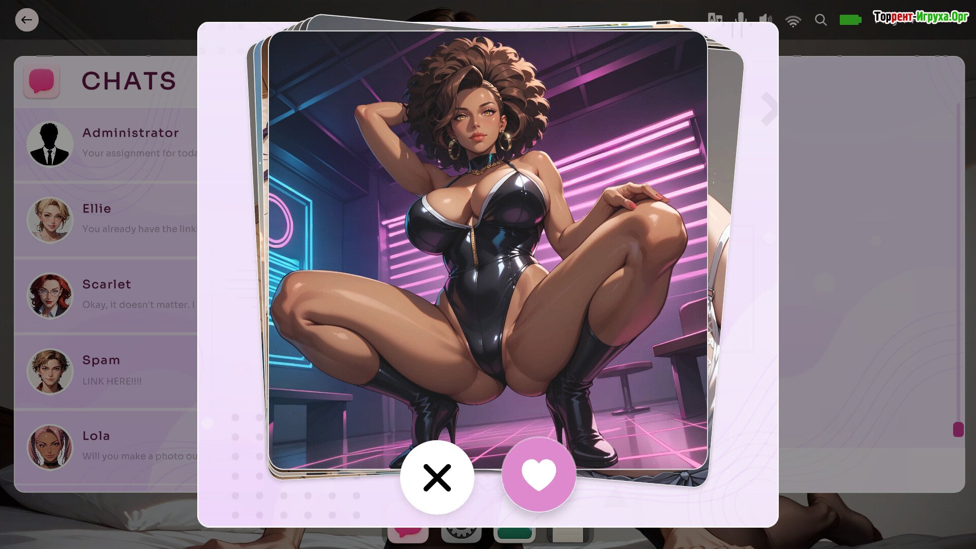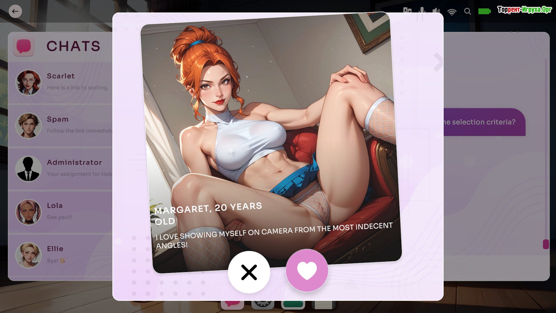 Игрок погружается в симулятор общения, где присутствуют элементы флирта и интерактивных сцен.