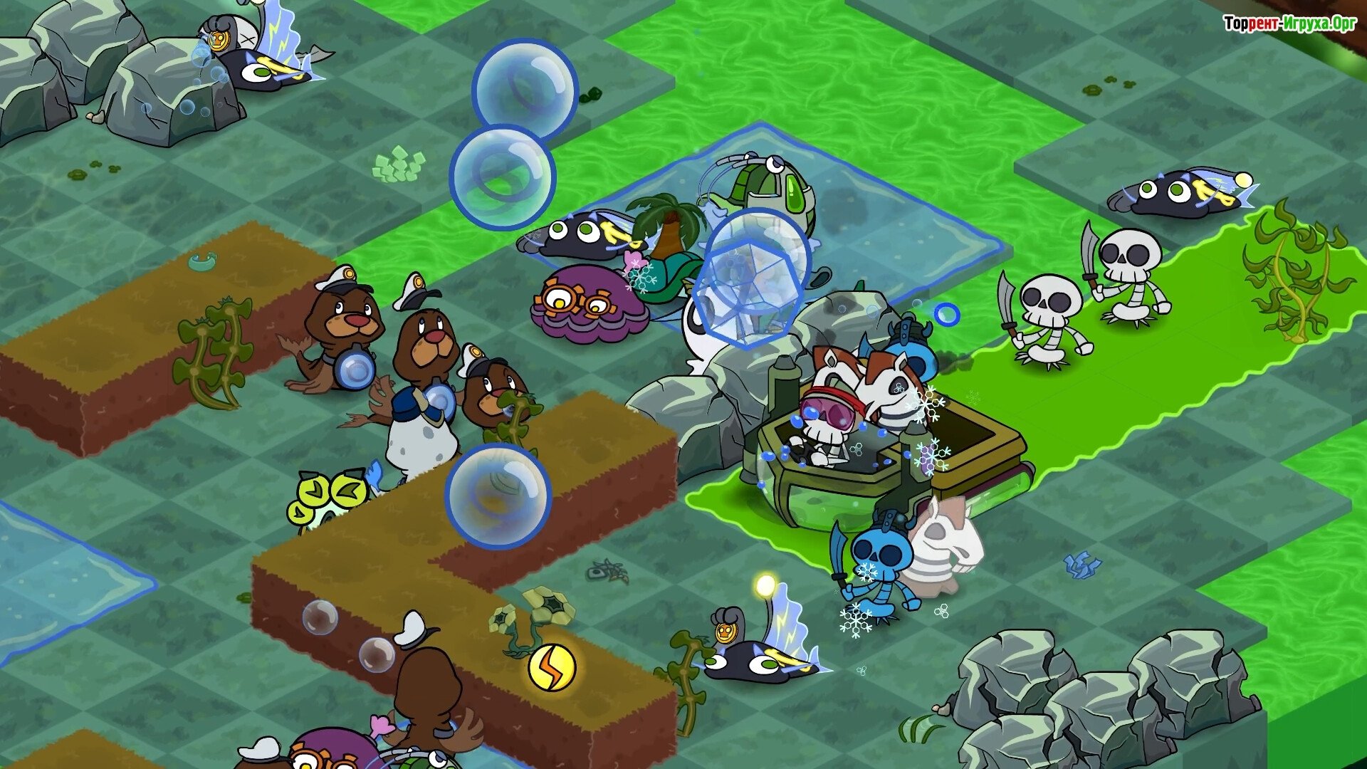 Постройте мощную линию обороны из уникальных турелей-существ, активно участвуйте в ближнем бою и спасайте подводный мир от надвигающегося костяного апокалипсиса.