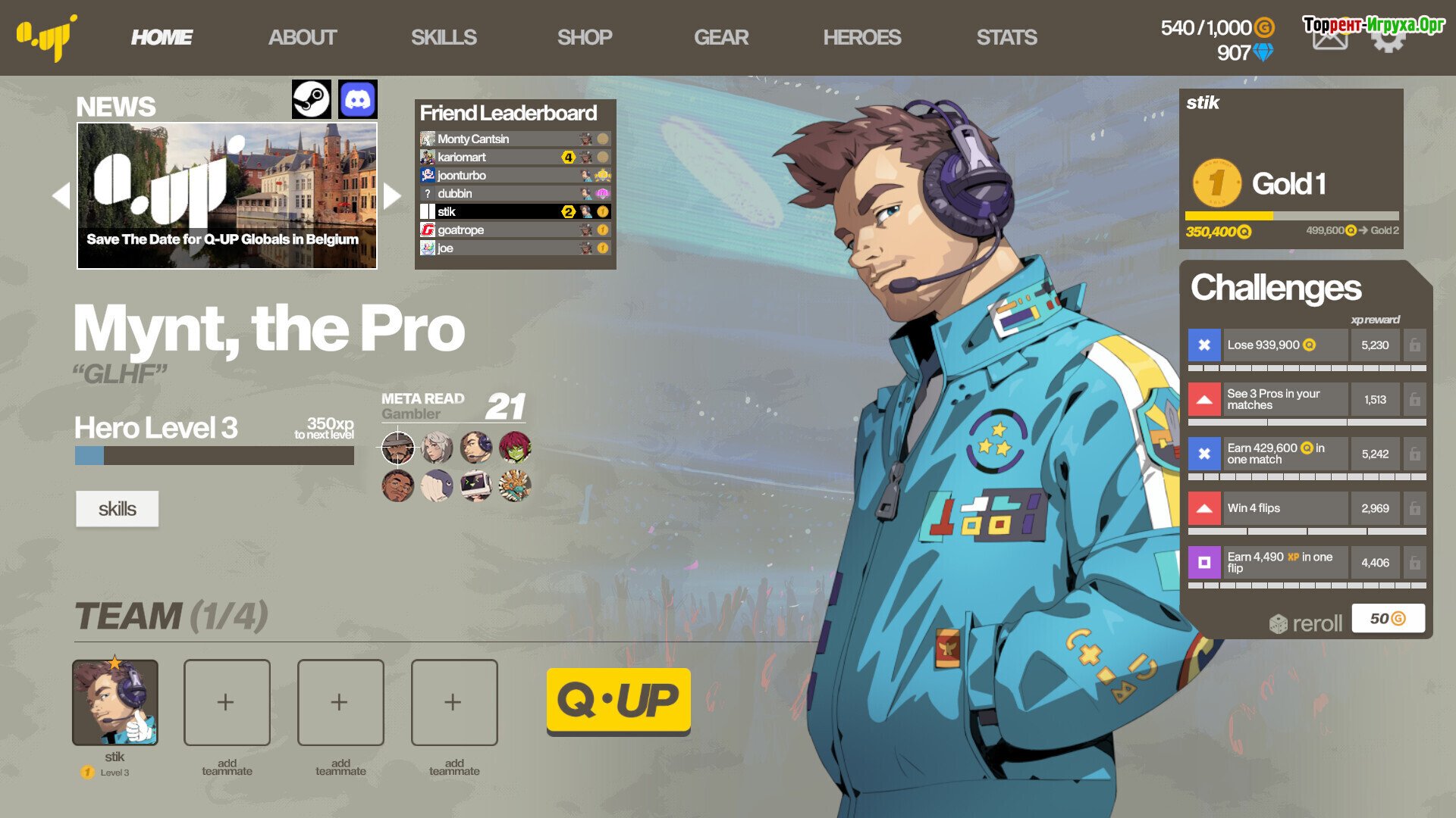 Сюжет разворачивается с ироничной серией неудач: бесконечные очереди, недружелюбные союзники и детские нытья в чате. Q-UP предлагает выход — минимализм и равные возможности. В этой системе нет места тренировкам, спорам или неравенству: достаточно полагаться на монету. Она выступает единственным судьей, беспристрастным к любым негативным проявлениям. Внешняя простота, однако, маскирует сложную структуру: корпоративные конфликты, парадоксы системы Q и бесконечная рейтинговая гонка, не имеющая конца. Изначально шуточная задумка по поводу матчмейкинга эволюционирует в симулятор безумной киберспортивной экономики, где каждое действие игрока может привести к стремительному взлету или катастрофическому падению на рынке.