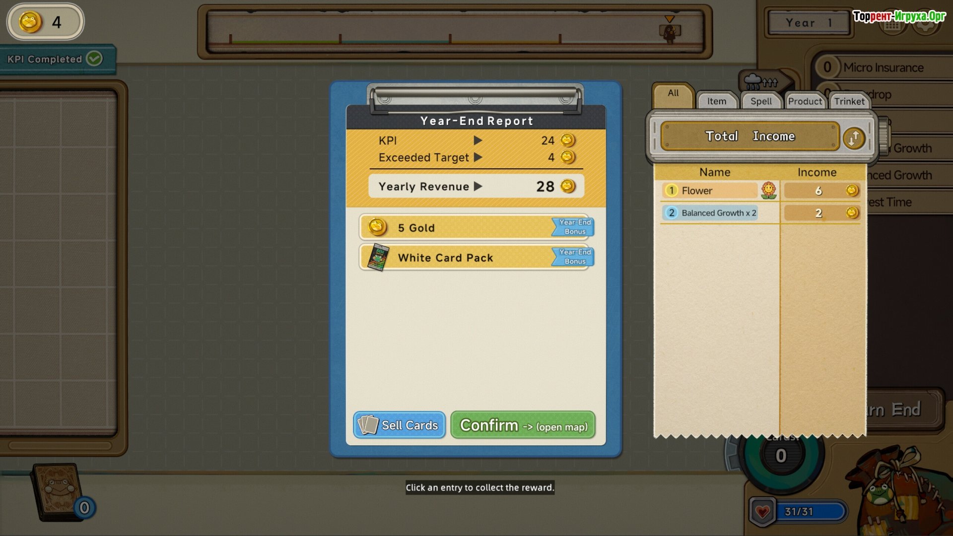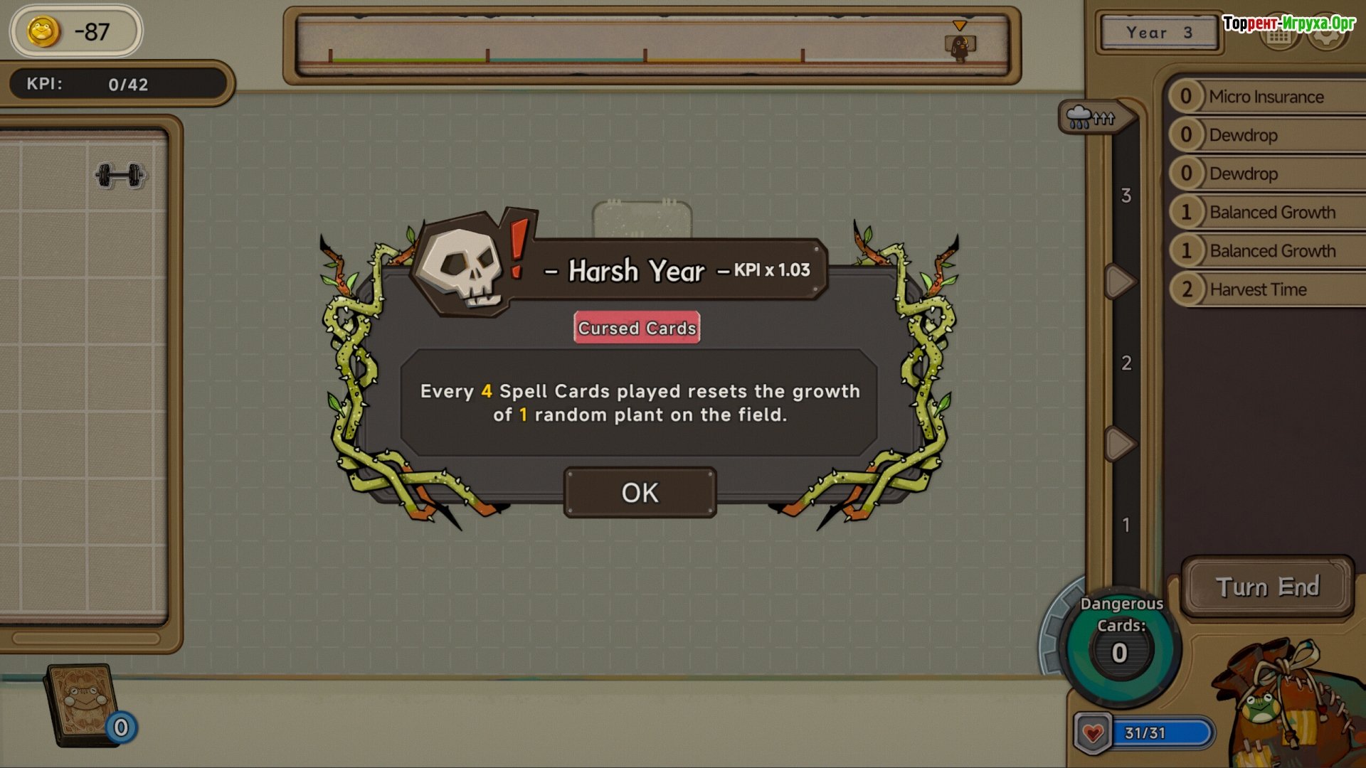 Вам предоставляется магический мешок, наполненный картами. Однако, каждая карта, которую вы берете, поглощает драгоценное время. В критические моменты, когда ставки высоки, необходимо последовательно тянуть карты, надеясь не допустить взрыва. KPI неуклонно растут, задачи становятся все более сложными, а годы превращаются в бесконечные катастрофы.Игровой процесс строится вокруг управления хаосом: вы открываете сундуки, находите редкие карты, принимаете решения о том, когда рисковать, а когда отступать. Но все эти действия совершаются ради одной цели – чтобы корпорация оставалась довольна. Иначе ваша ферма и вы сами исчезнете из времени, став ненужной и бесполезной ошибкой.
