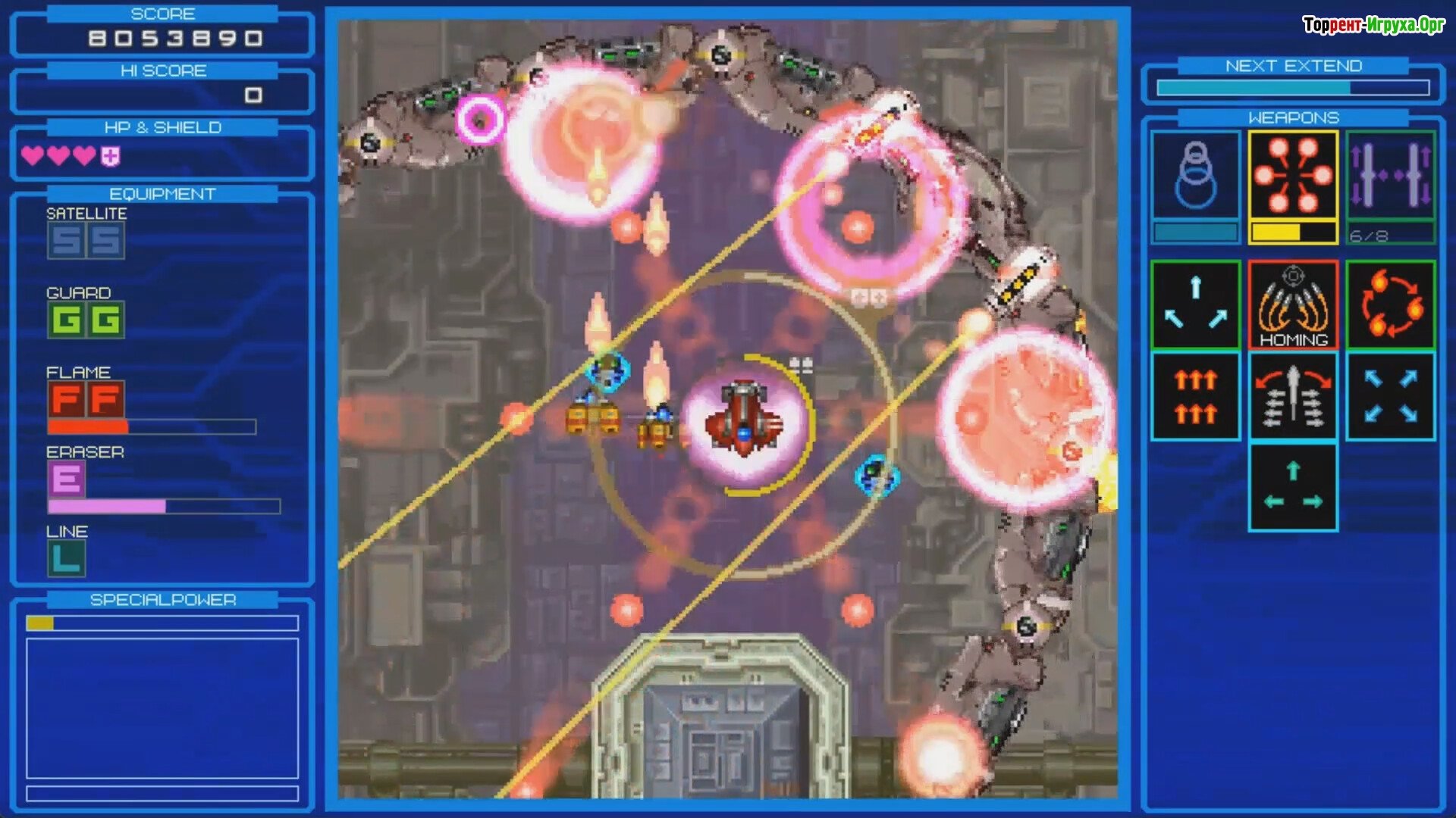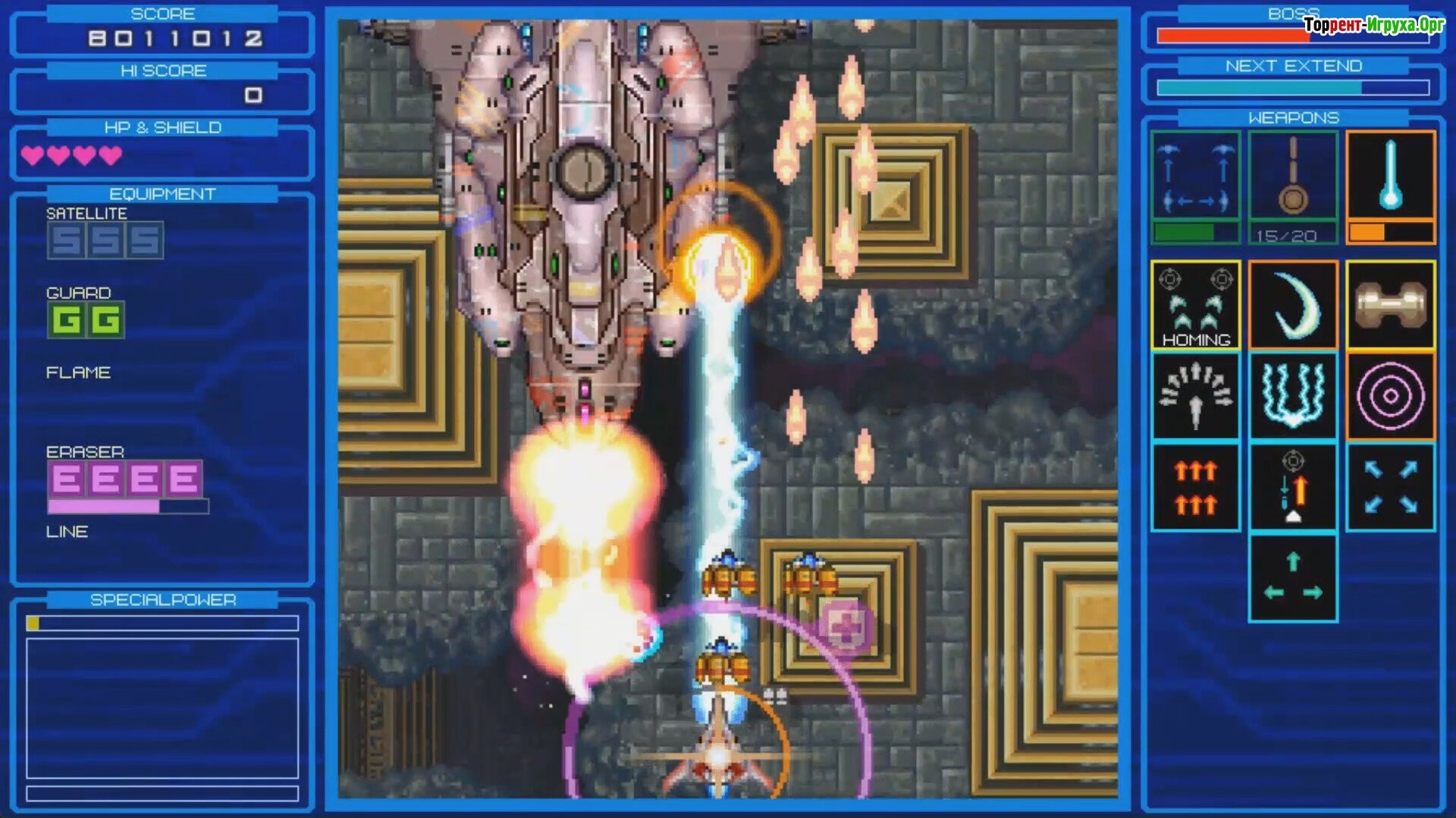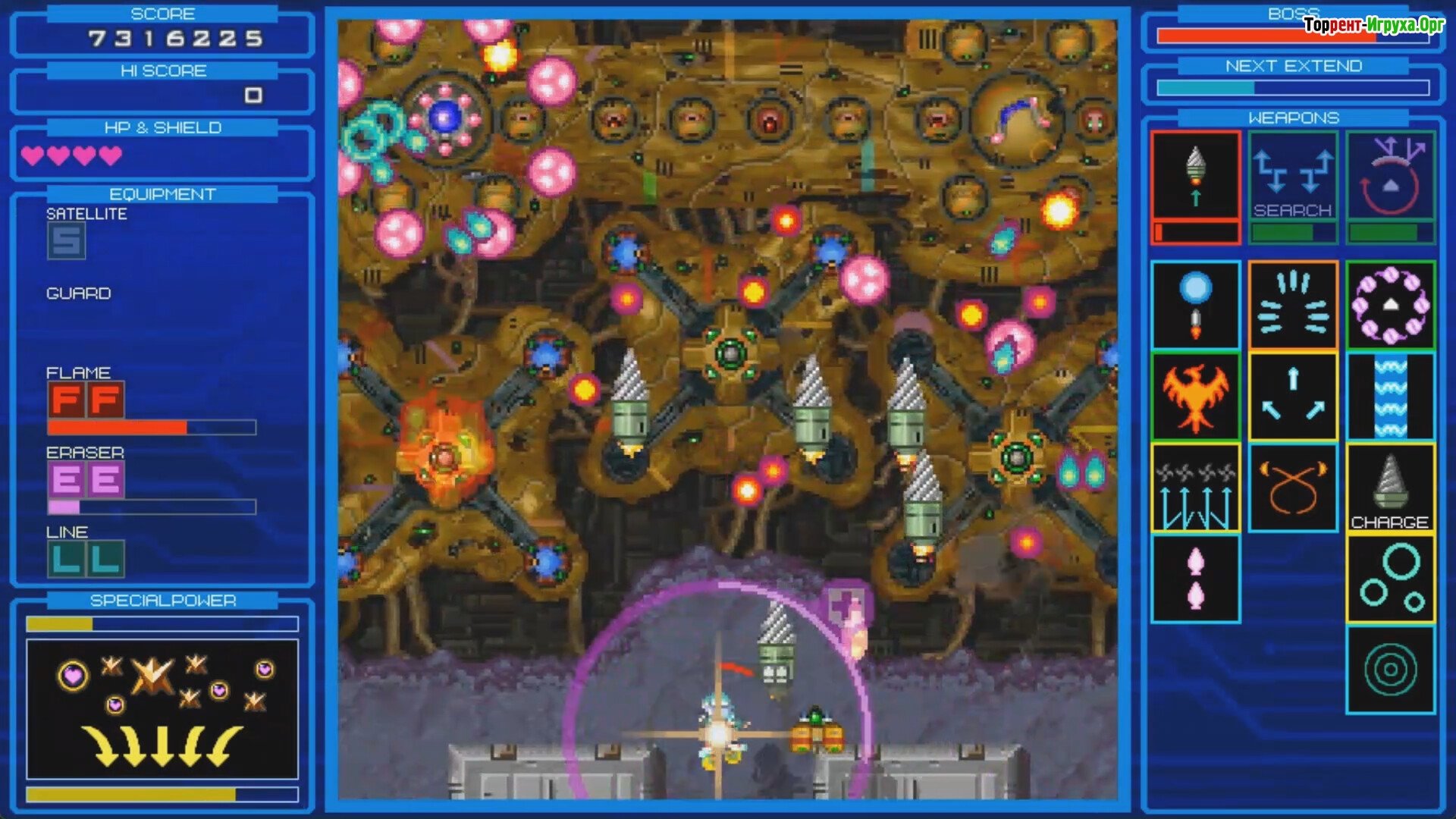 Особенности игры: * Для каждого персонажа предусмотрено три этапа прохождения. * Доступно несколько типов кораблей и обширный набор экипировки. * Игра предлагает различные концовки и уровни сложности, позволяющие адаптироваться под любой стиль игры.