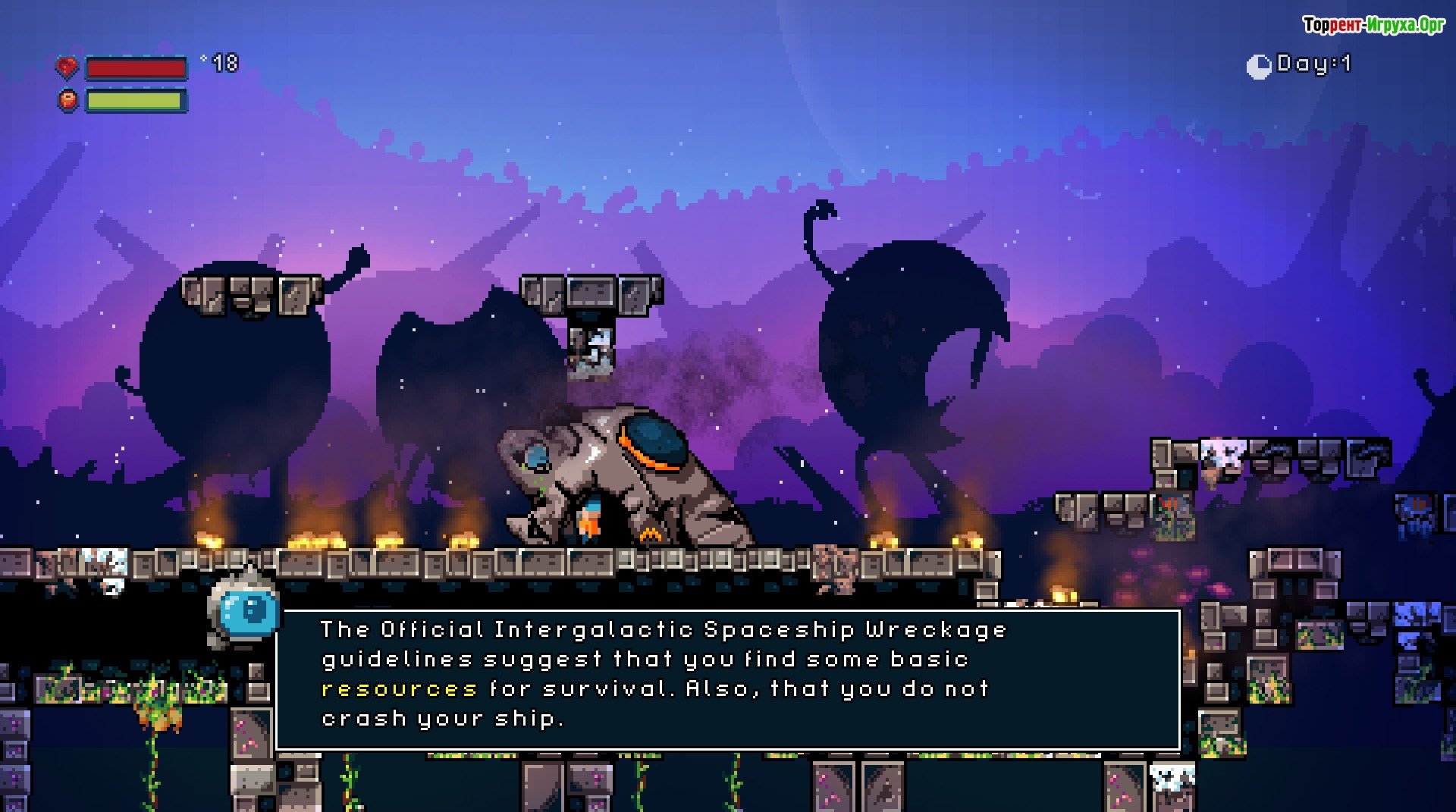 ## Главные особенности * Построение различных зданий и создание экипировки. * Исследование инопланетных технологий и открытий. * Сражения с разнообразными, неизвестными созданиями. * Детализированная пиксельная графика, создающая атмосферу. * Решение простых, но увлекательных головоломок. * Раскрытие секретов древней, давно исчезнувшей цивилизации. * Возможность выбрать пол персонажа. * Настройка различных параметров выживания, чтобы адаптироваться к условиям.