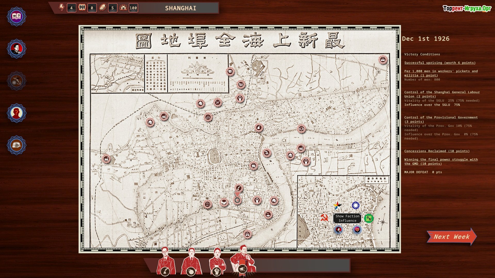 "Rise Of The White Sun" – это масштабная стратегия-песочница, действие которой разворачивается в период Warlord China. Игроки смогут взять под контроль различные фракции: от повстанцев-коммунистов и бунтовщиков-боксер до всадников-монголов и многих других. И, конечно же, здесь присутствуют бронепоезда. Эта игра – одна из самых впечатляющих глобальных стратегий, перенесших игрока в эпоху китайских военачальников. Вместо этого отправляйтесь в увлекательное путешествие в мир, где вас ждут захватывающие тайны и коварные военные интриги. Погрузитесь в хаос начала XX века в Китае, и обычные стратегии Второй мировой войны покажутся вам предельно простыми и неинтересными. Вы, безусловно, найдете знакомые вам фракции, характерные для многих стратегий, но это лишь малая часть всего, что вас ждет!