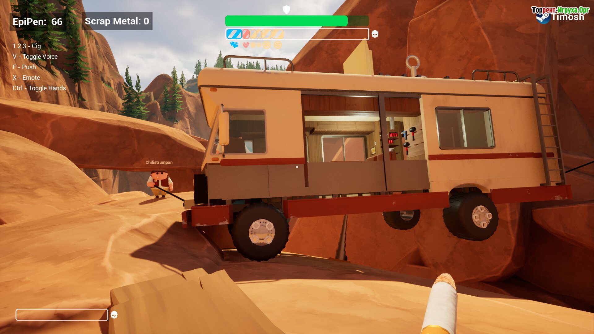 RV There Yet? – это мрачная комедия о путешествии, дружбе и борьбе за выживание в самой необычной долине на свете. Вы просто намеревались добраться домой, но оказались в месте, где навигаторы бесполезны, а законы физики кажутся насмешкой. Добро пожаловать в хаотичный мир, где даже бургер может стать вашим спасением.
