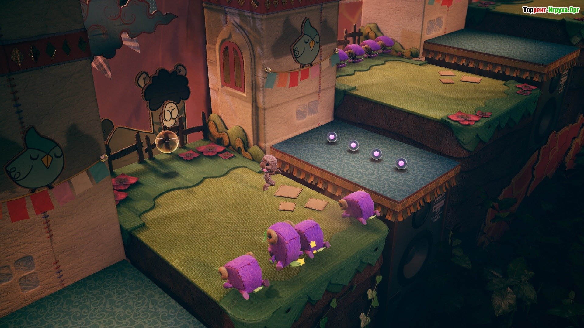 Социальное ориентирование Еще одной интересной особенностью этой игры является акцент на социальное ориентирование. Вы будете постоянно видеть различные рекомендации по совместной игре, мониторить достижения других игроков, читать отзывы и узнавать другие интересные моменты. Разработчики обещают регулярно обновлять контент и добавлять новые игровые режимы. Скачайте торрент Sackboy A Big Adventure на ПК, и вы сможете смело погрузиться во все доступные возможности. Не стоит слишком расслабляться, ведь многие испытания потребуют четкого взаимодействия с окружением и внимательного учета таймингов.