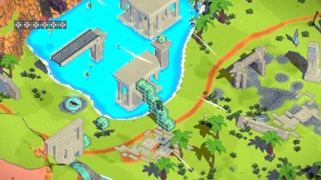 ## Игровые зоны, задачи и интерактив Вселенная игры разделена на различные биомы, среди которых – поселение Сидония и обширные пустынные территории. Основные задачи игрока заключаются в поиске энергетических ядер, решении пространственных головоломок и освоении закрытых зон. Кубы выступают в роли ключевого инструмента для перемещения по миру и открытия новых маршрутов.