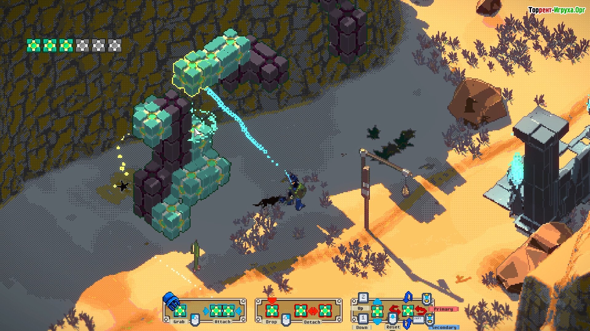 Sands of Hope – это захватывающая исследовательская игра с открытым миром, в которой ключевую роль играют головоломки, основанные на физике взаимодействия магнитных объектов. Вы управляете роботом Хоупом, обладающим способностью перемещать, вращать и соединять кубы – это основа для создания сложных конструкций, необходимых для достижения целей.