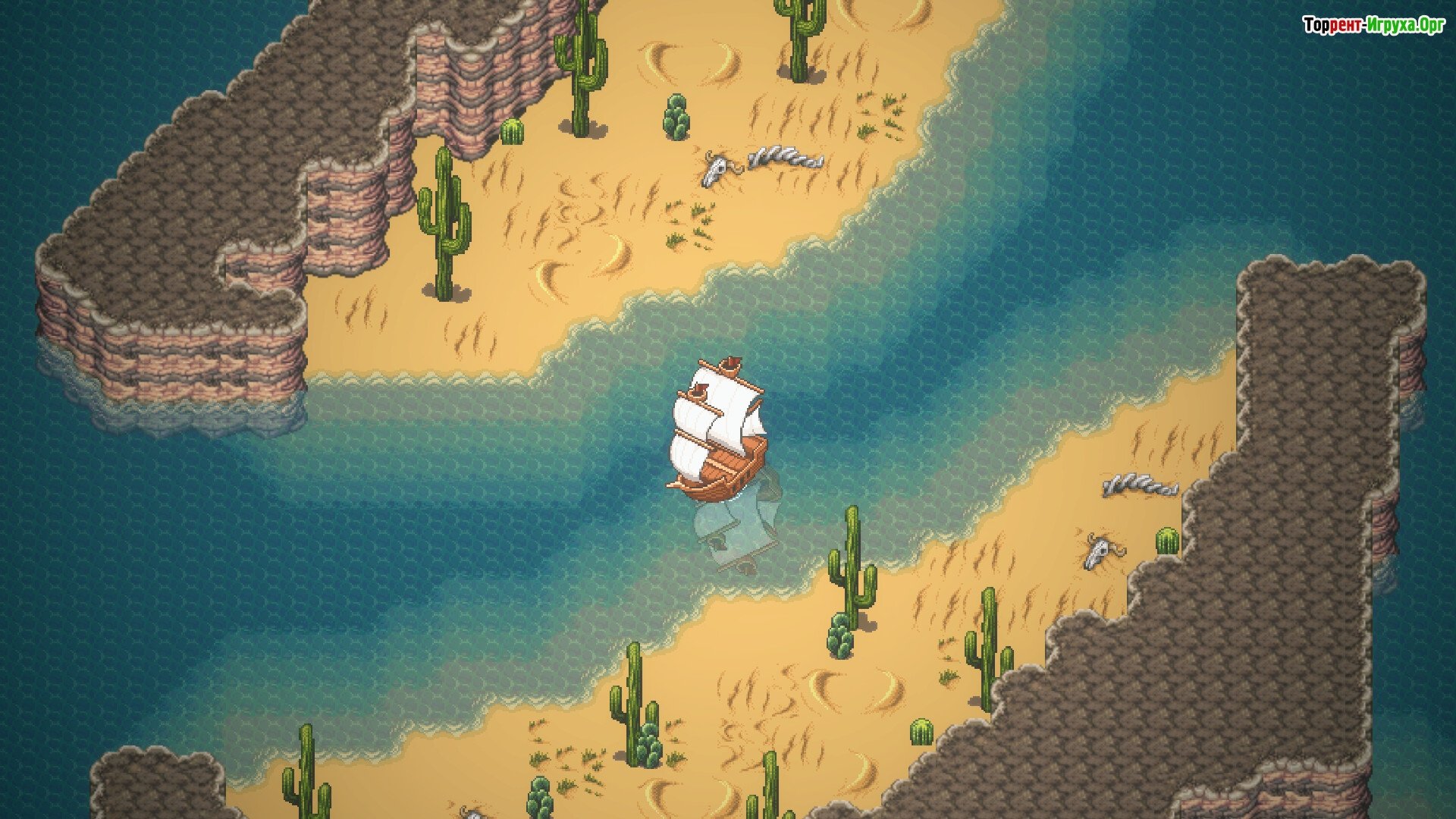 Исследуйте огромный пиксельный мир на своей лодке, открывая новые горизонты.