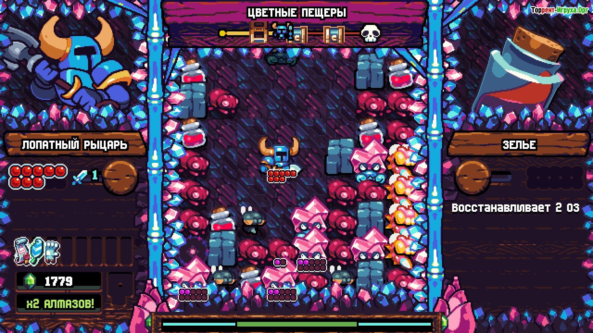 Да, многие игроки уже поняли, что вас ждет новый игровой режим в формате «Три в ряд». Вам предстоит активно использовать все свои новые возможности и получать удовольствие от красивой игры, которая сочетает в себе привычных врагов и возможности, но представлены под другим жанром. При этом сохранилась возможность посещать город, улучшать героя и прокачивать его навыки. Кроме того, вас ждут соревнования с другими игроками-авантюристами – представителями того же круга. В любом случае, вас ждет уникальное окружение и новые возможности. Важно, что сохранена тематика и юмор игры.Постарайтесь спасти мир, собрать все сокровища и сделать из героя самого важного и незаменимого героя. Все в ваших руках – оцените все возможности и стремитесь к хорошим результатам. Мы желаем вам успехов и рекомендуем скачать игру Shovel Knight Pocket Dungeon через торрент на ПК, чтобы ничто не мешало вашим приключениям. Впереди вас ждут множество уникальных и насыщенных приключений.
