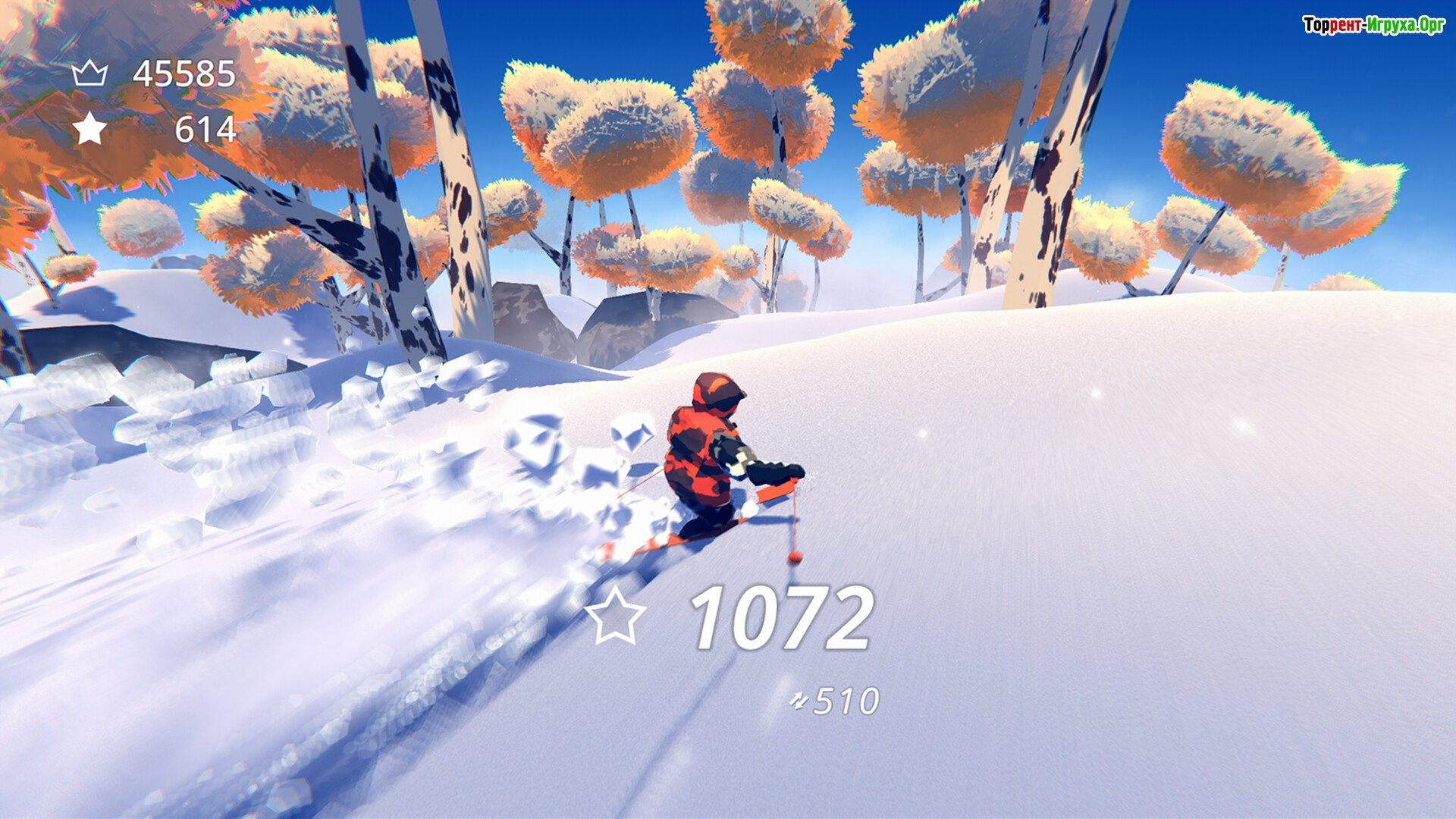 Наслаждайтесь захватывающими арктическими пейзажами, зарабатывая очки или просто погружаясь в атмосферу катания. Геймплей отличается простотой освоения, а перед вами открывается безграничный мир бесконечно генерируемых гор.