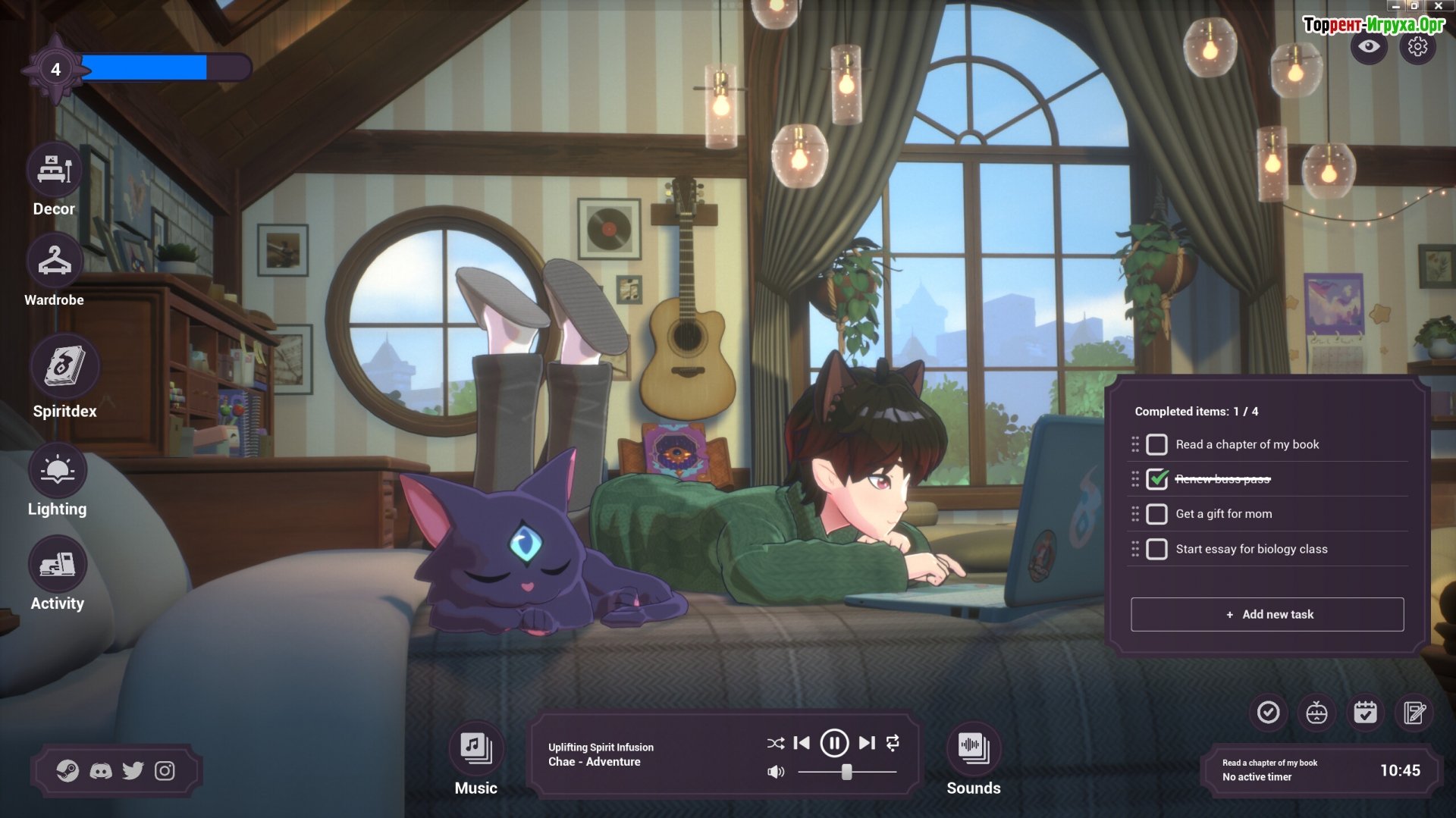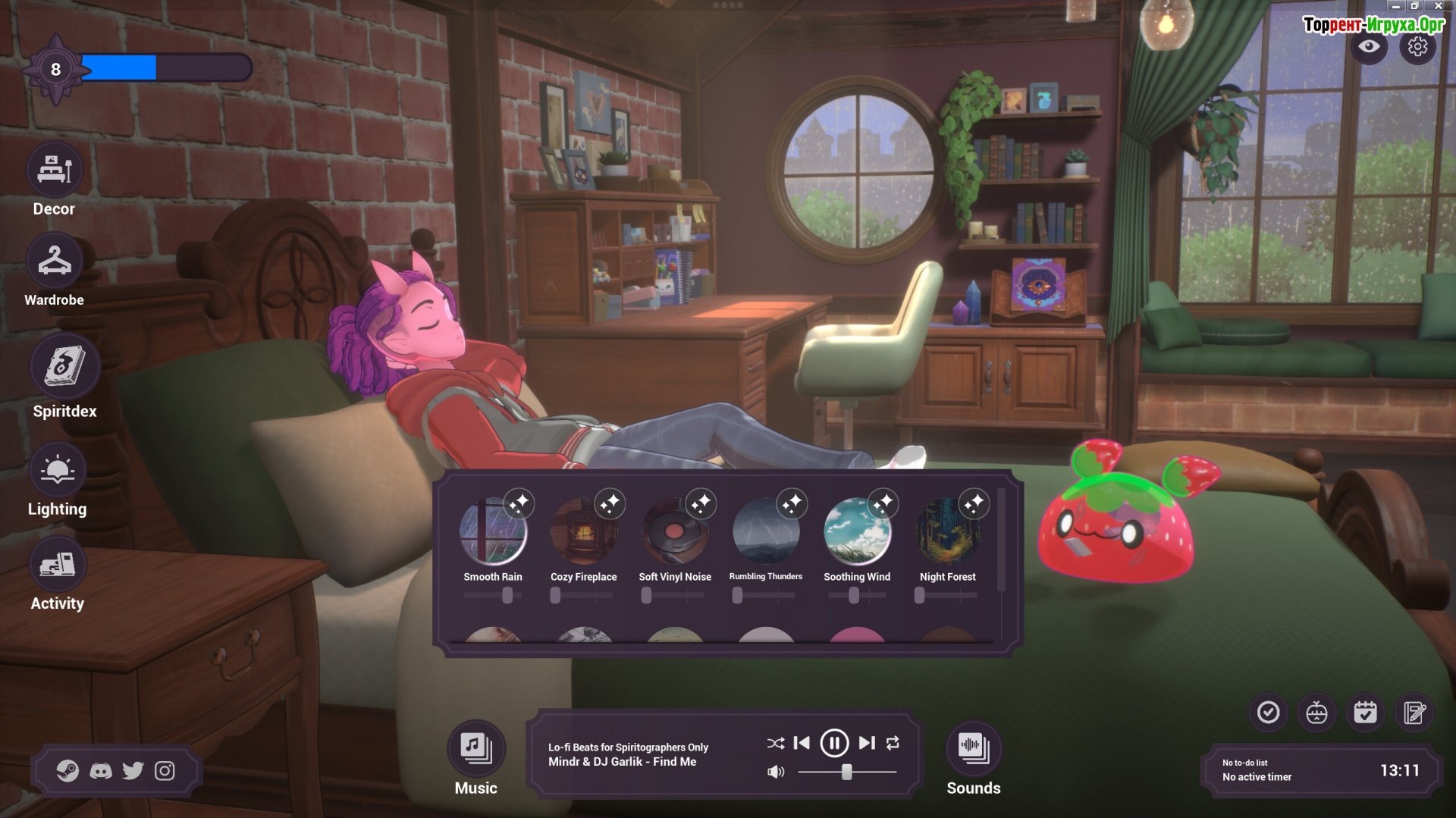 Обратите внимание, разработчики уделили особое внимание добавлению успокаивающих лофи-ритмов. Устройтесь поудобнее, расслабьтесь и наслаждайтесь тщательно подобранным каталогом тематических плейлистов, подходящих для любого настроения и случая. Если вы стремитесь навсегда избавиться от стресса, скачайте Spirit City: Lofi Sessions через торрент на ПК.