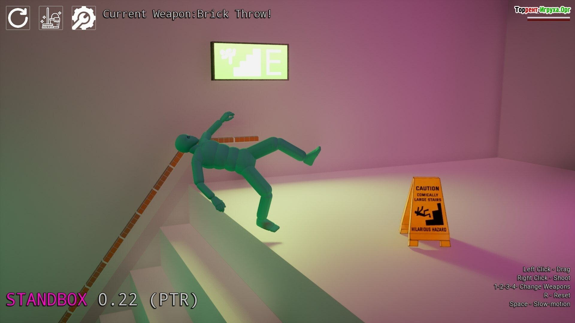 STANDBOX – это классическая физическая песочница с акцентом на одиночный режим игры. Здесь вас ждет огромный арсенал возможностей, чтобы разыграть тряпичную куклу – стрелять, толкать и наблюдать, как она пытается подняться, пока не достигнет предела.